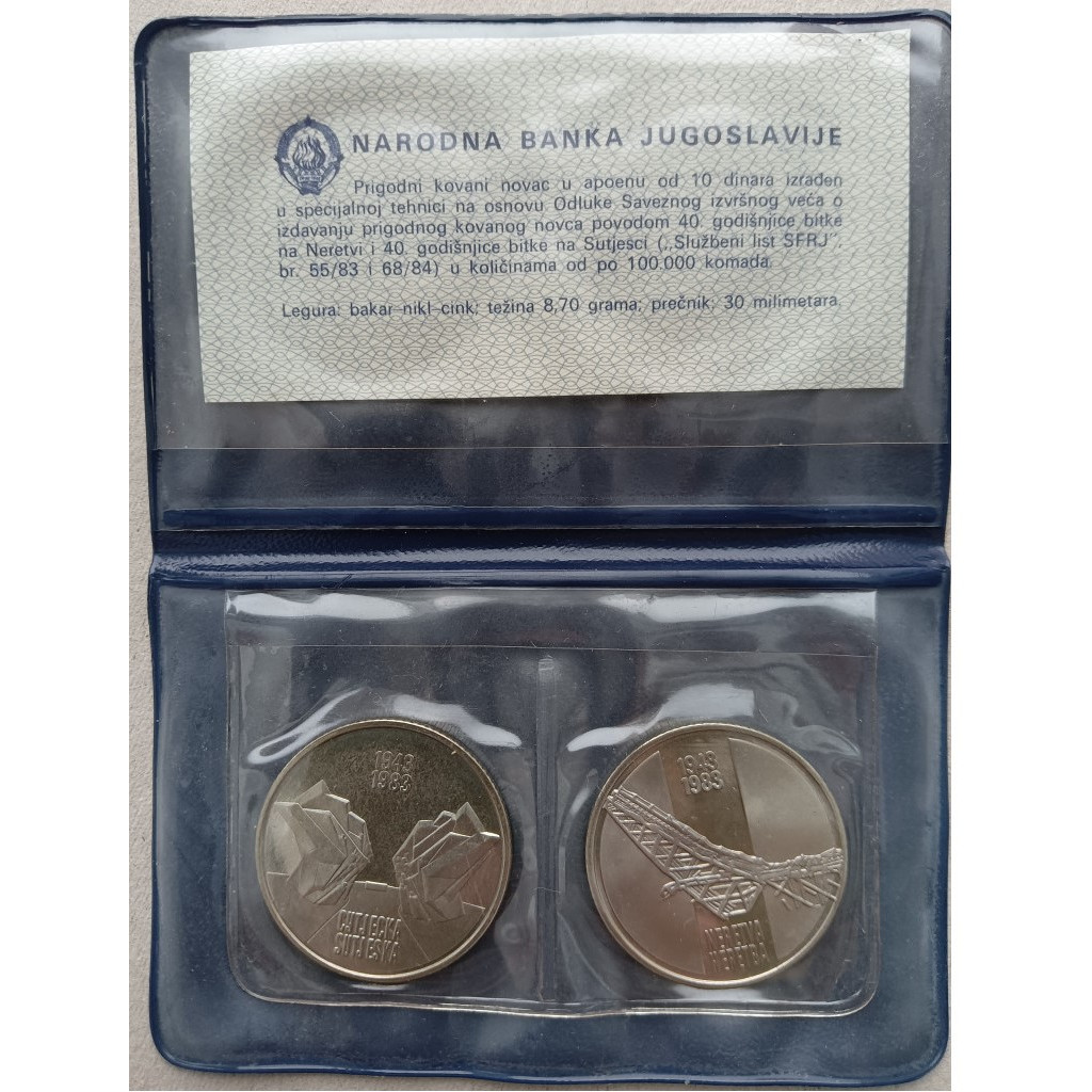 Югославия 10 Динаров 1983 год , Битва на реке Неретва и Сутьеска , 2 монеты