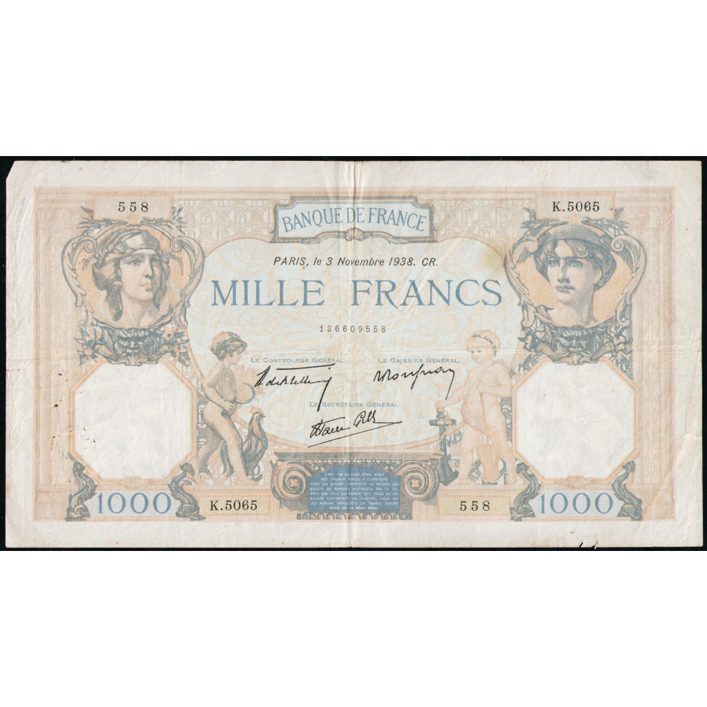 Франция 1000 франков 1938 год