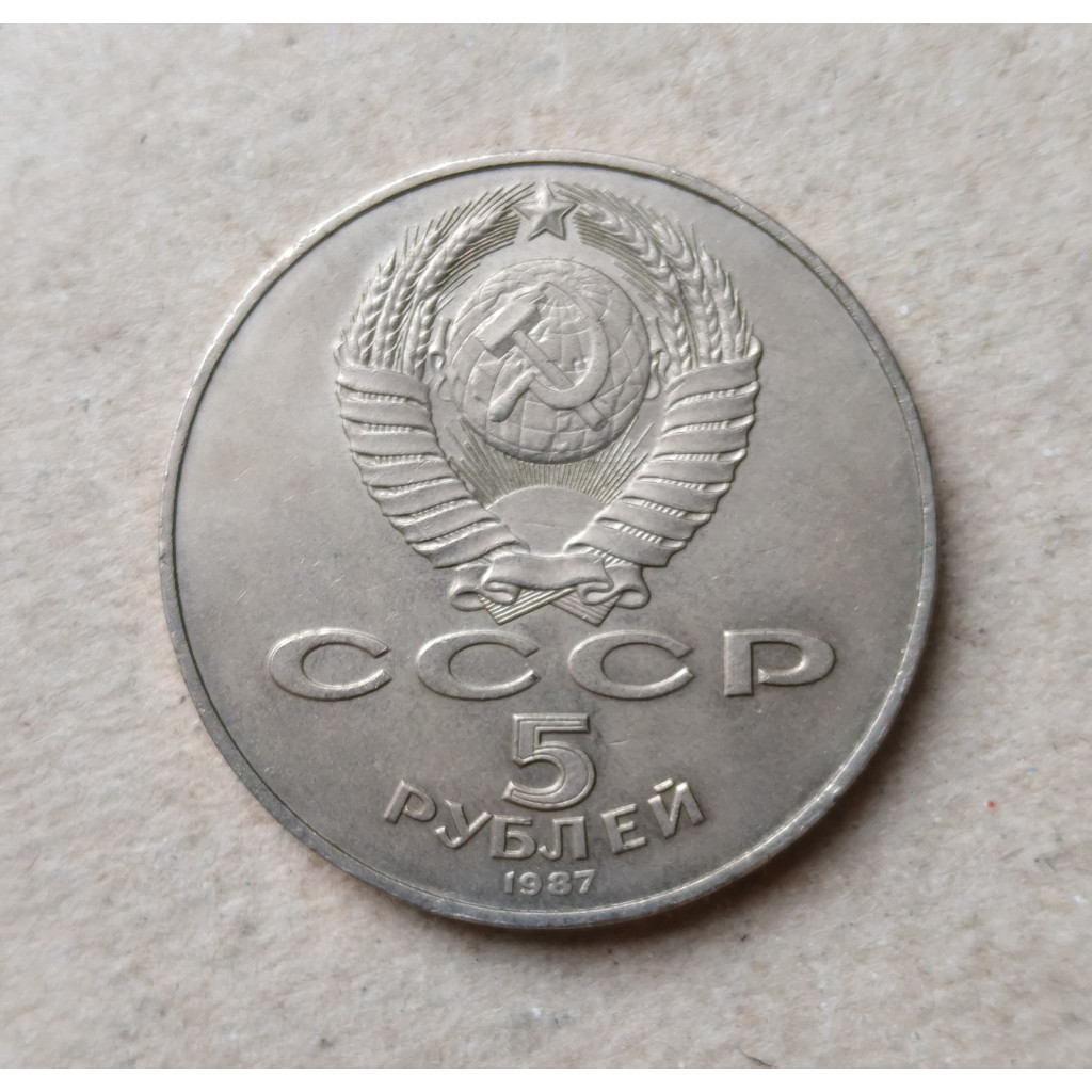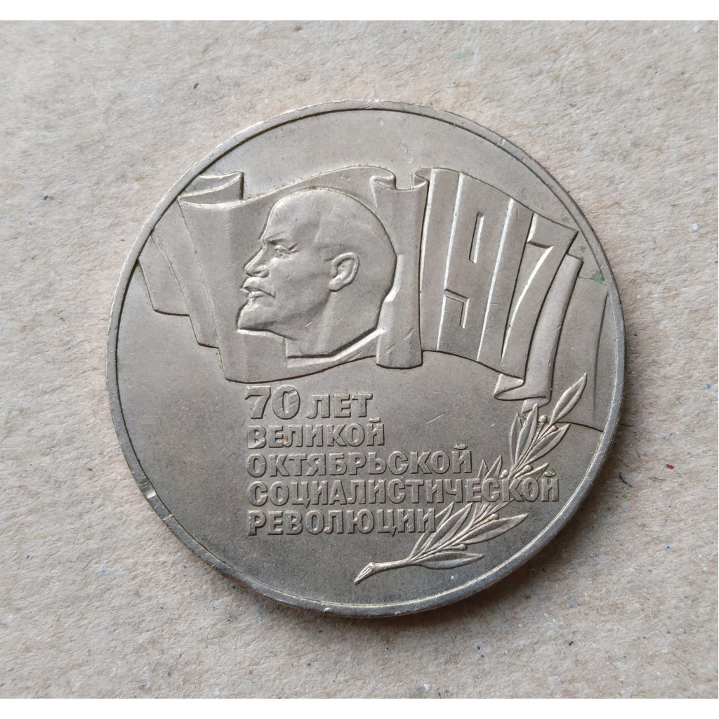 СССР 5 Рублей 1987 год , 70 лет лет ВОСР , Шайба
