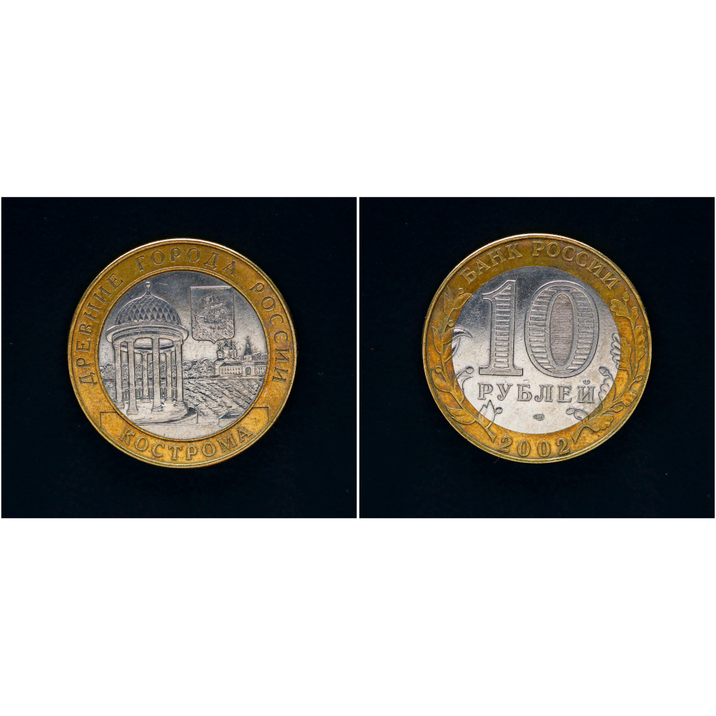 Россия 10 рублей 2002 СПМД год. Кострома Древние города (BOX424)