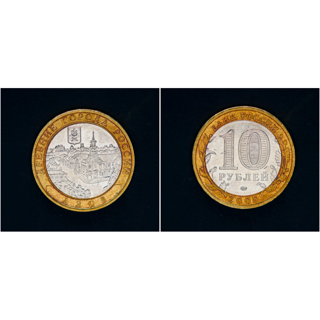 Россия 10 рублей 2008 ММД год. Азов Древние города России (BOX992)