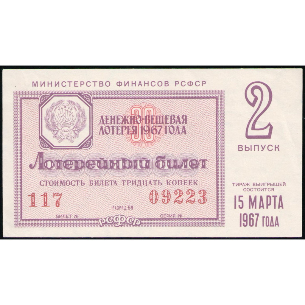 РСФСР 30 Копеек 1967 год , Лотерейный билет , 2 Выпуск