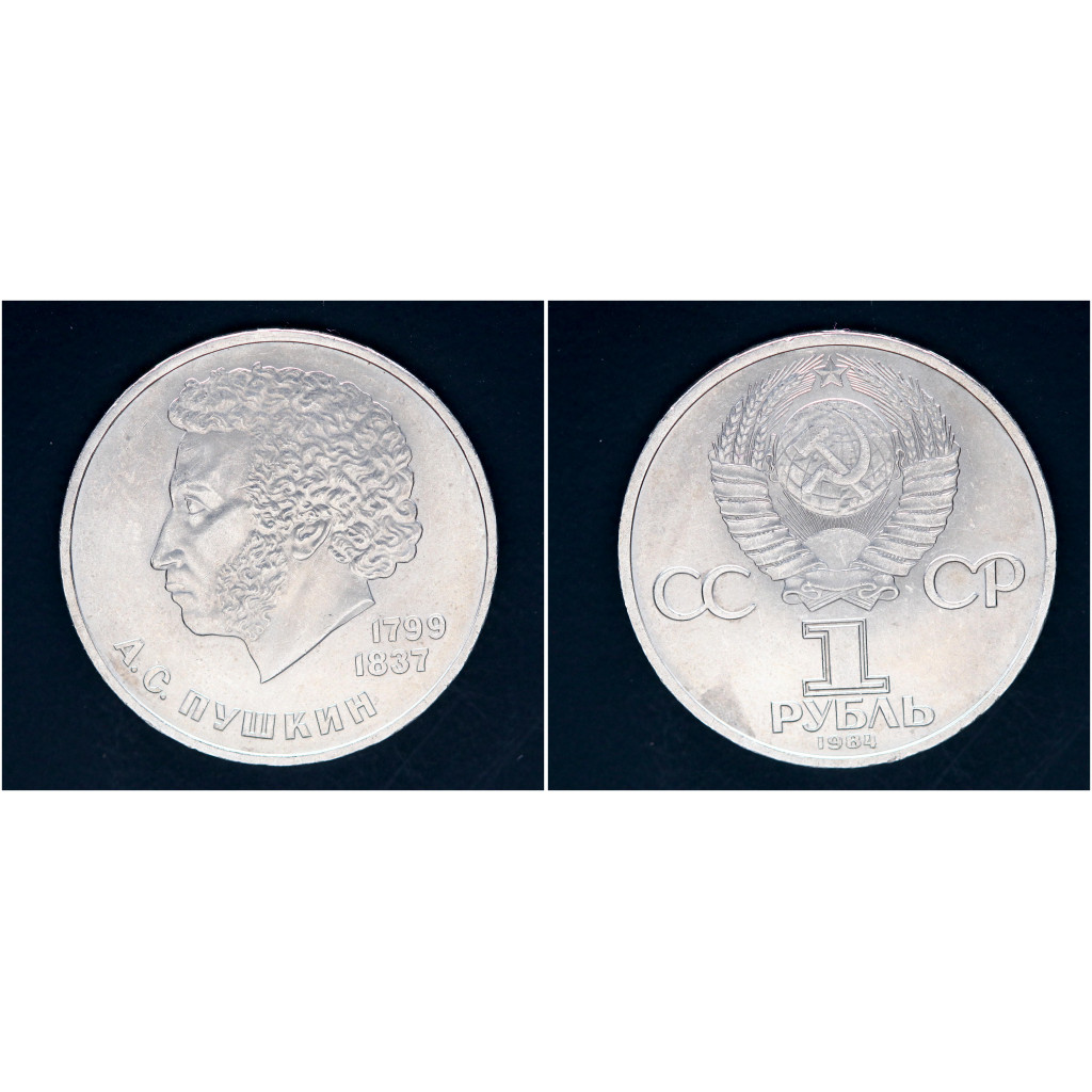 СССР 1 Рубль 1984 год. 185 лет со дня рождения Александра Сергеевича Пушкина (BOX378)