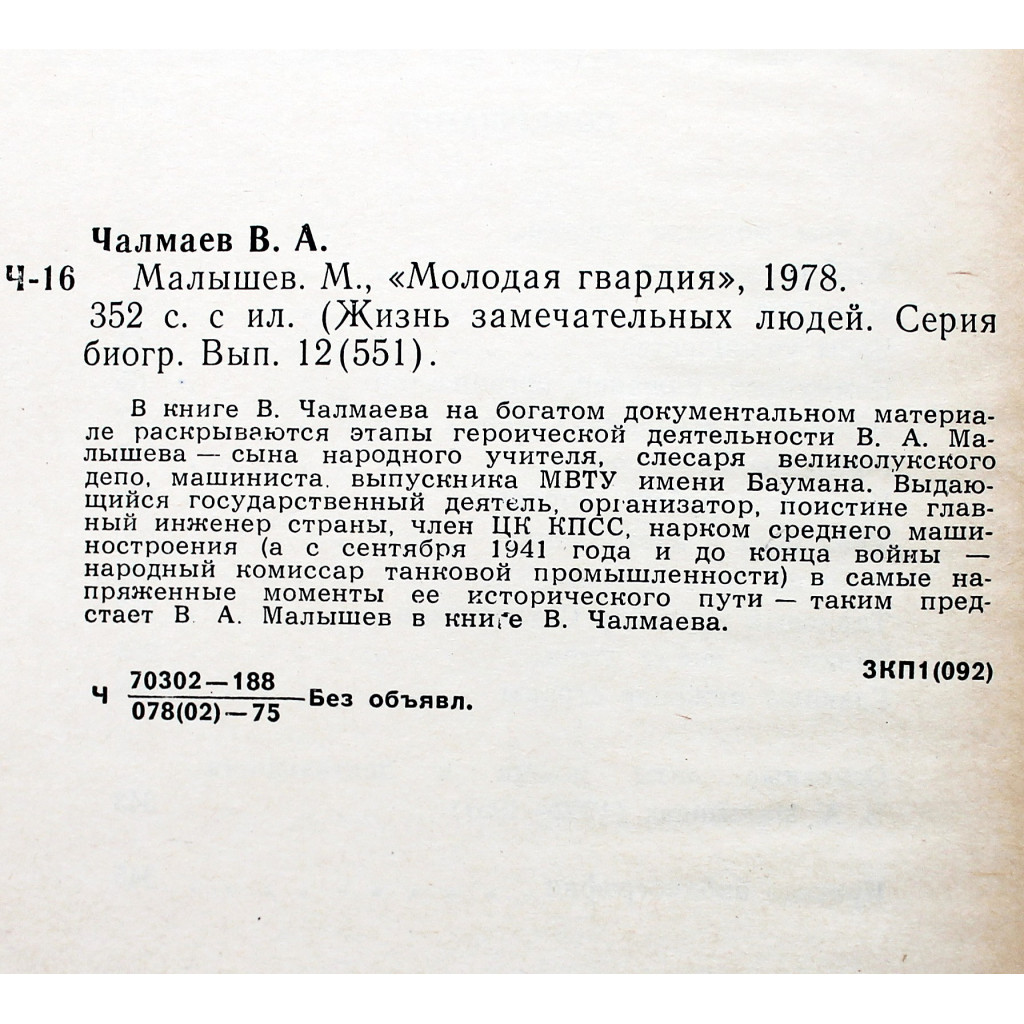 В. Чалмаев - Малышев (Молодая гвардия, 1978) «ЖЗЛ»