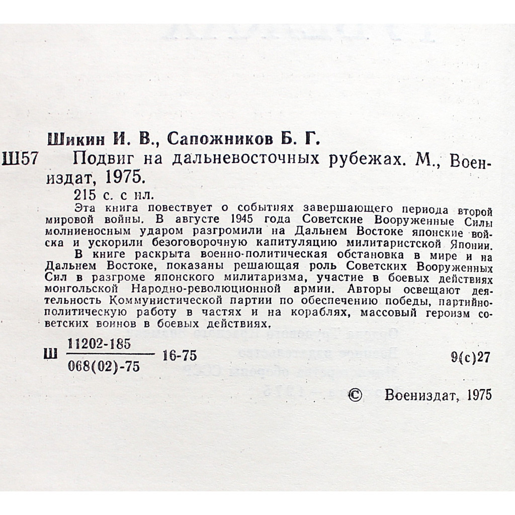 И. Шикин, Б. Сапожников - Подвиг на дальневосточных рубежах (Воениздат, 1975)