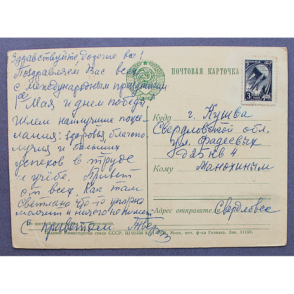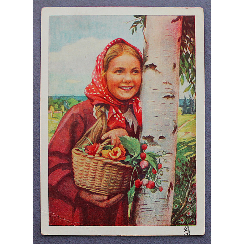 СССР почтовая открытка «ДЕВОЧКА С ЛУКОШКОМ». По фотографии Хорунжего (Мин связи, 1958) подписана