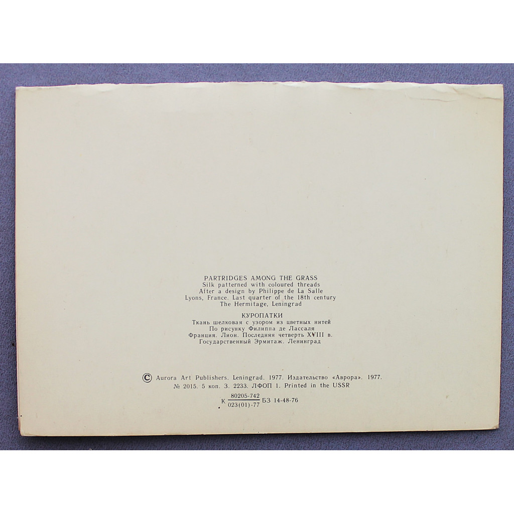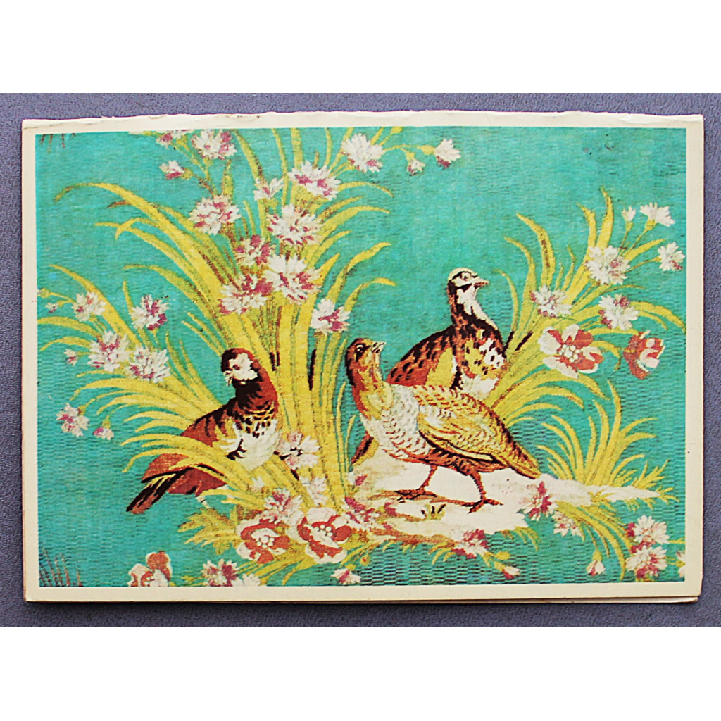 СССР двойная открытка "КУРОПАТКИ". Филипп де Лассаль. Эрмитаж (Ленинград, 1977) Чистая