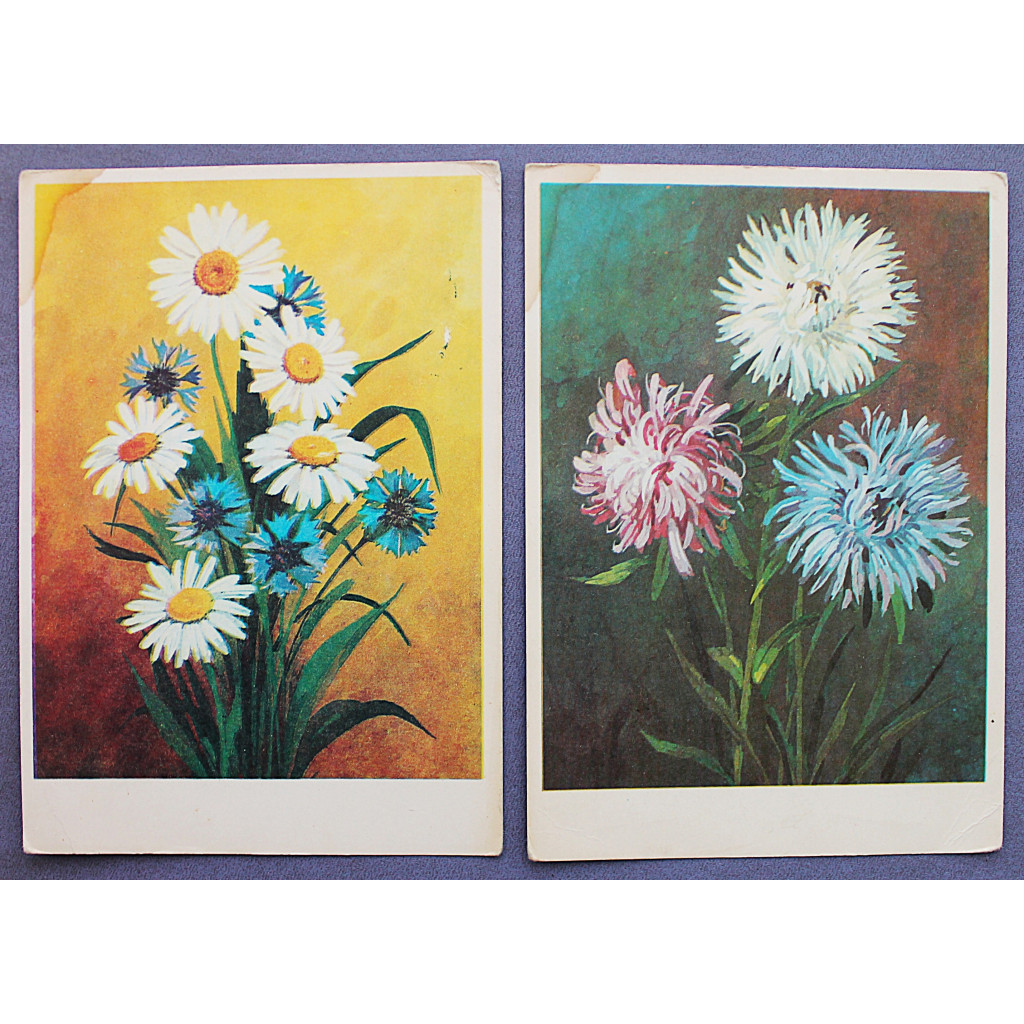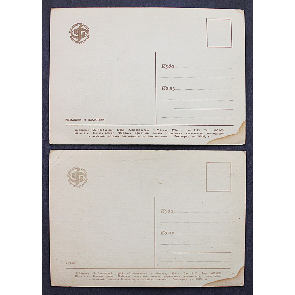 СССР пара почтовых открыток «ЦВЕТЫ». Астры. Ромашки и васильки (Союзпечать, 1976) Раховский. Чистые