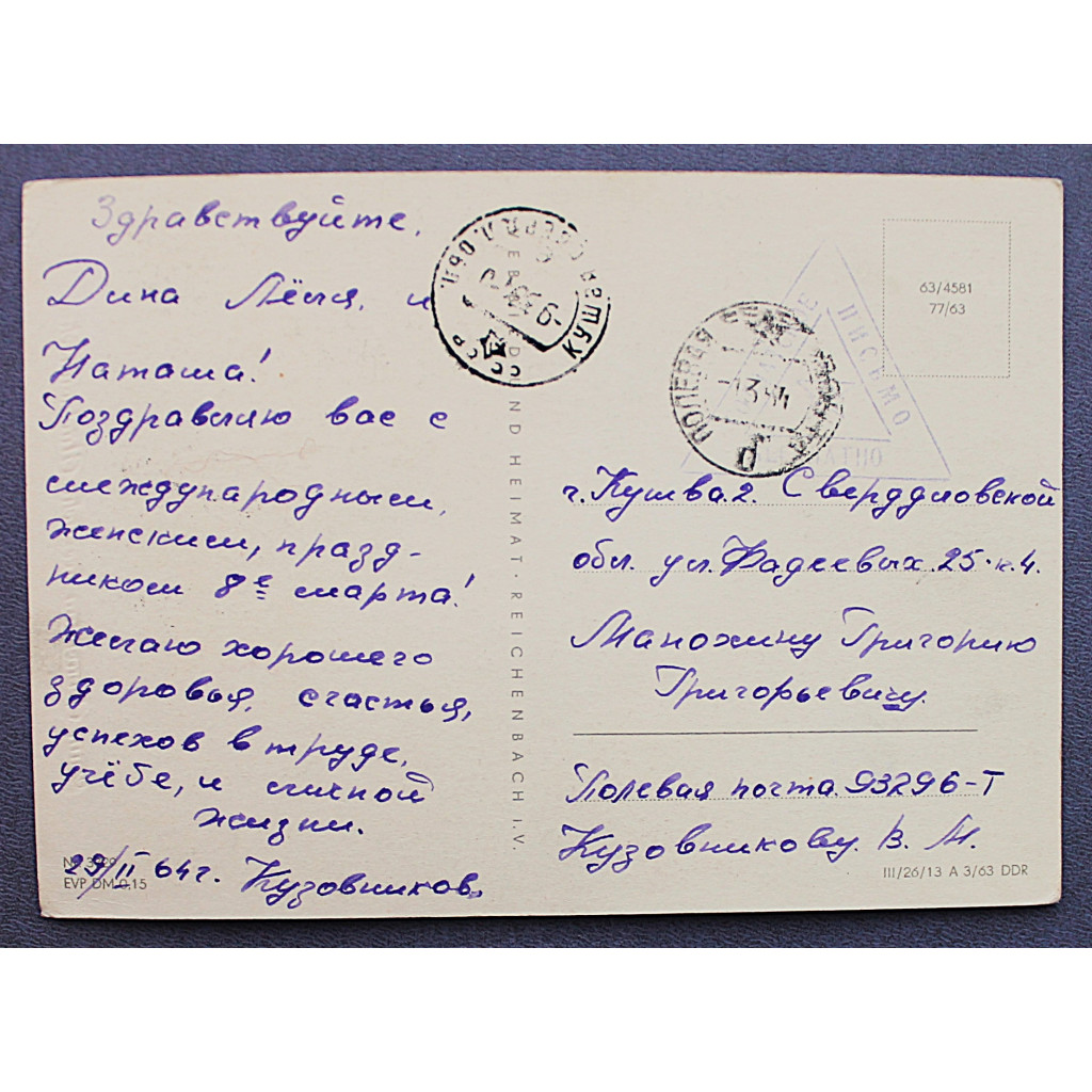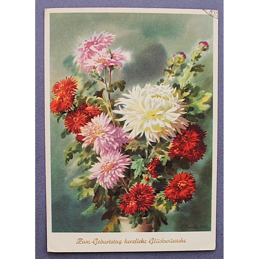 ГДР почтовая открытка "Наилучшие пожелания ко дню рождения". Букет хризантем (1963 год) подписана