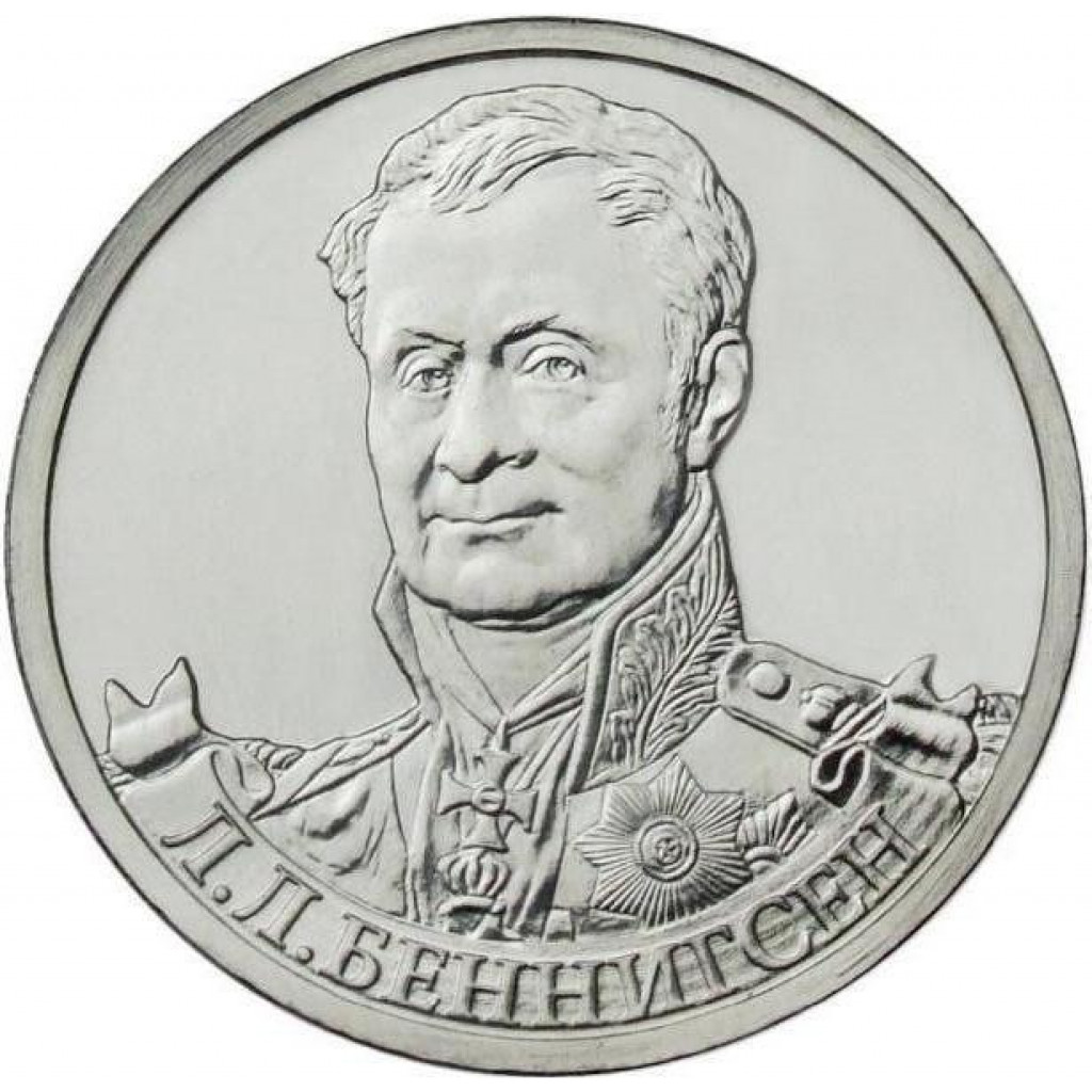 РОССИЯ 2 рубля 2012 UNC. Беннигсен. "200-летие победы России в Отечественной войне 1812 года"