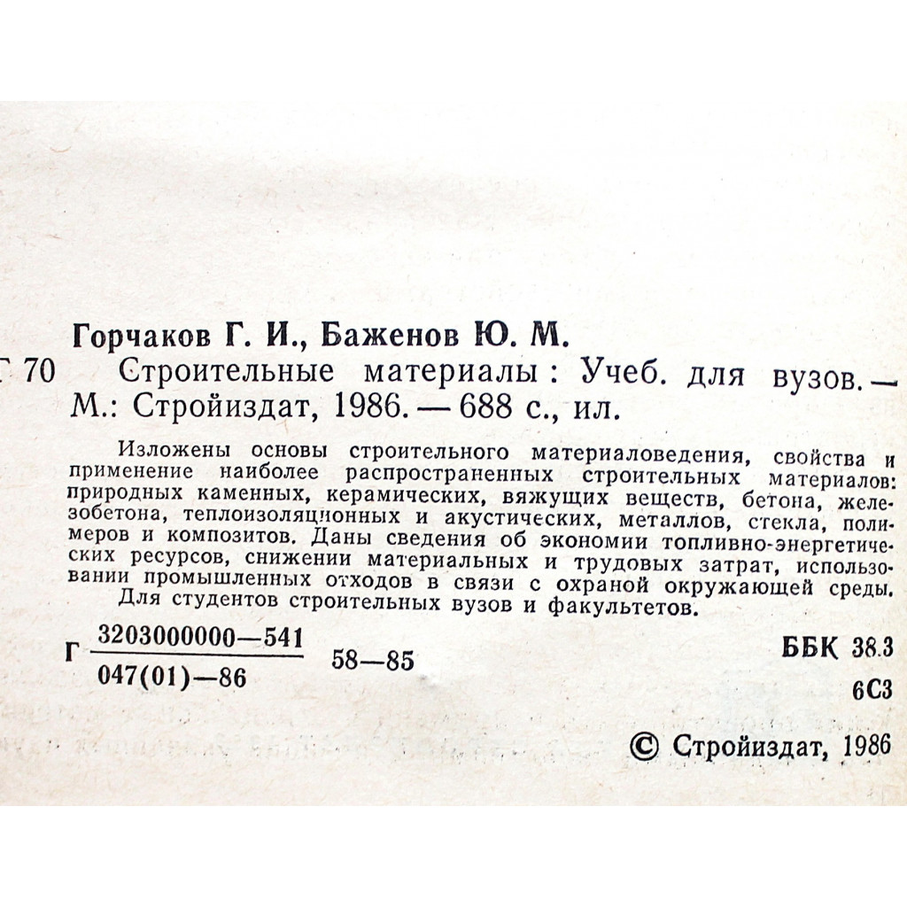 Г. Горчаков, Ю. Баженов - Строительные материалы
