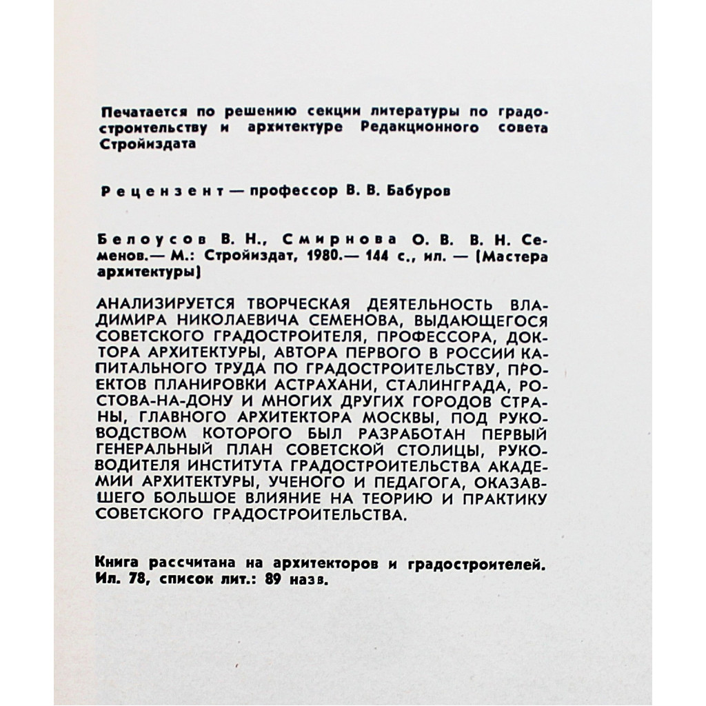 В. Белоусов, О. Смирнова - "В.Н. Семенов" (Стройиздат, 1980)