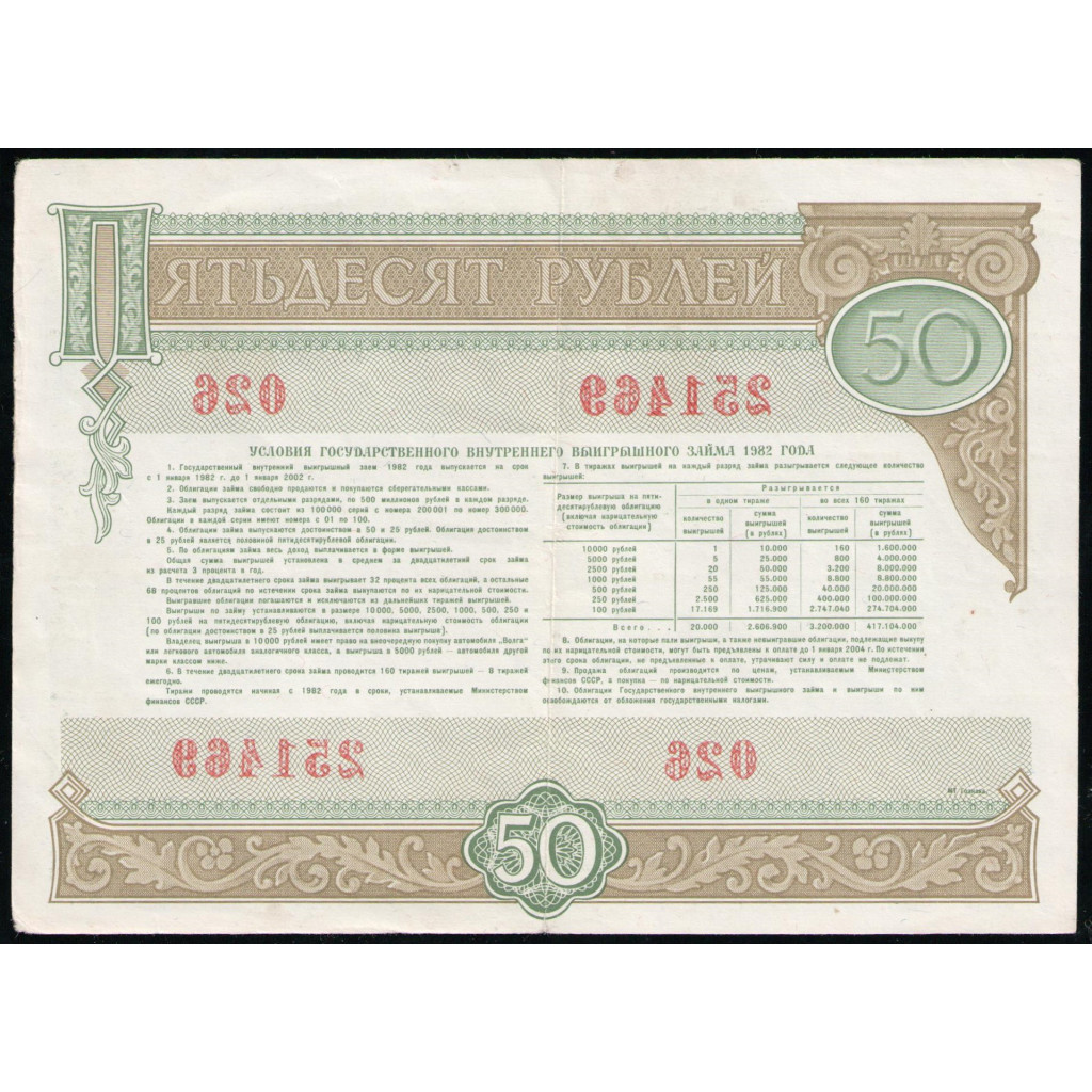 СССР 50 рублей 1982 год , Облигация