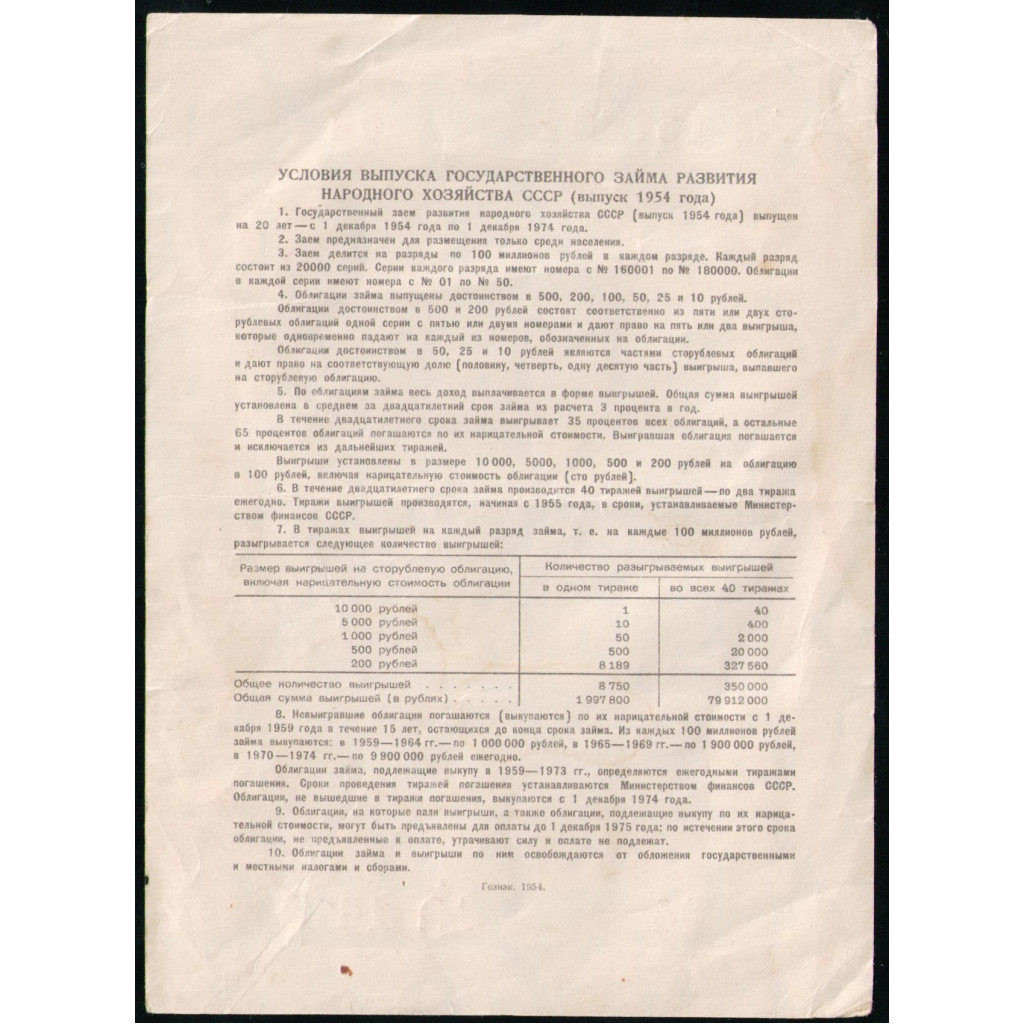 СССР 10 рублей 1954 год , Облигация