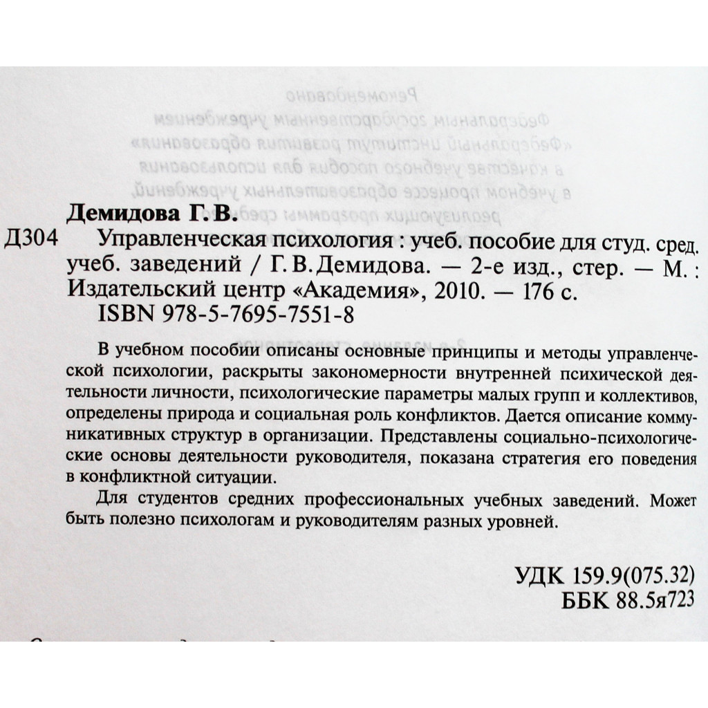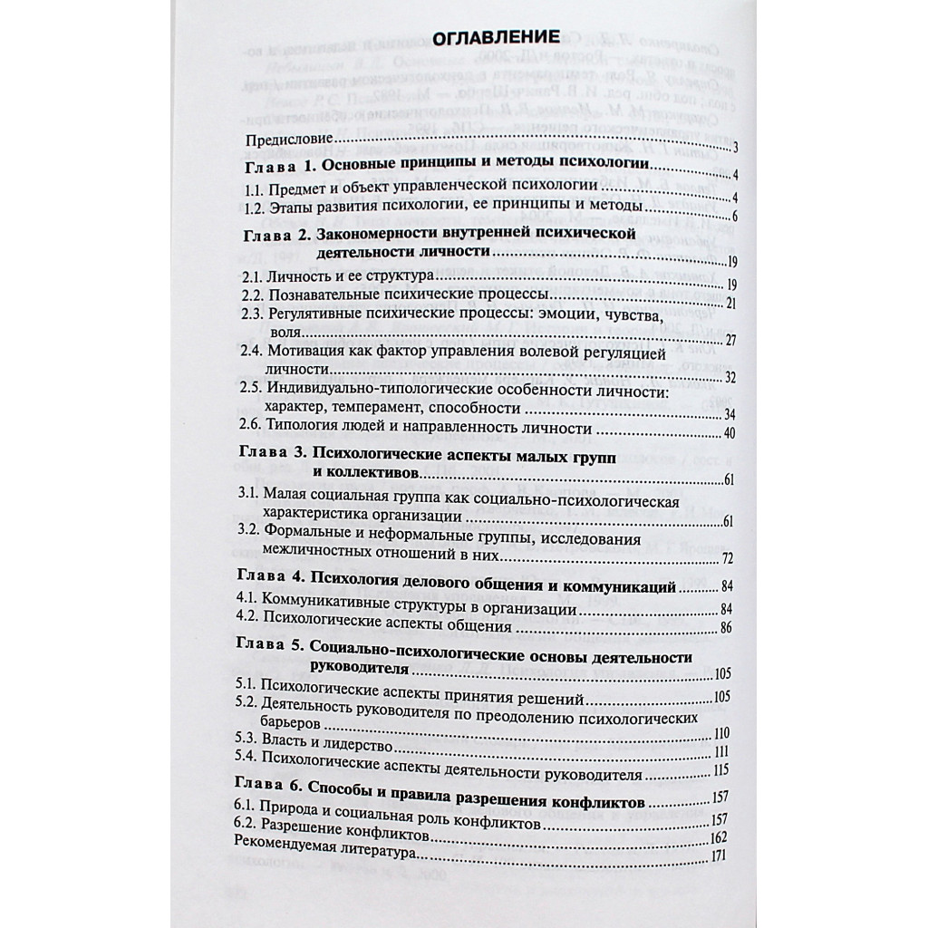 В учебном пособии описаны основные принципы и методы управленческой психологии, раскрыты закономерности внутренней психической деятельности личности, психологические параметры малых групп и коллективов, определены природа и социальная роль конфликтов. Дается описание коммуникативных структур в организации. Представлены социально-психологические основы деятельности руководителя, показана стратегия его поведения в конфликтной ситуации.