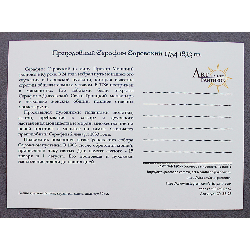 Преподобный Серафим Саровский. 1754-1833 гг. Новая почтовая открытка