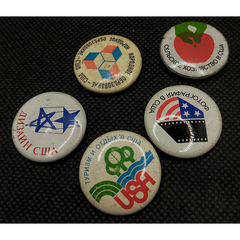 СССР набор из пяти различных Знаков / Значков. Выставка, Исследования, Фотография, Образование, Дизайн (BOX694)