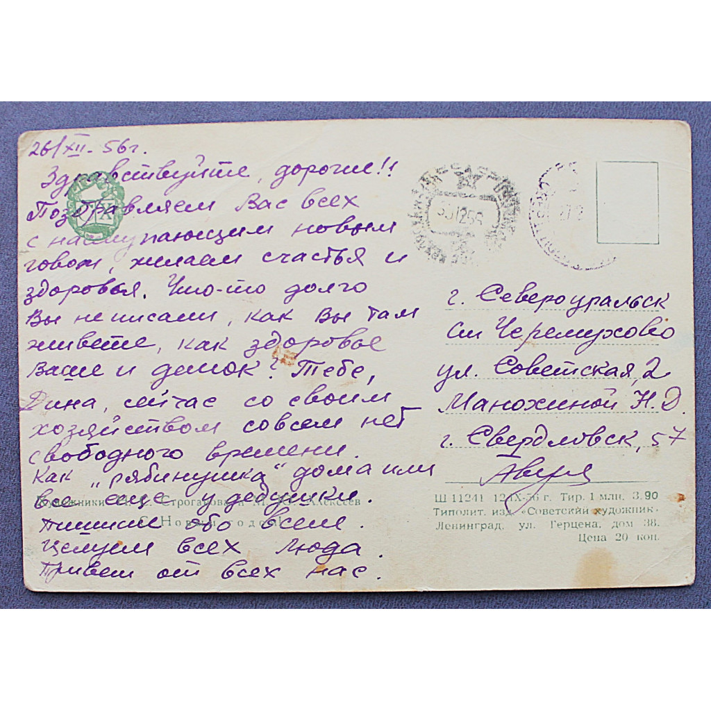 СССР почтовая открытка «С НОВЫМ ГОДОМ!» (Сов художник, 1956) Строганов, Алексеев (подп)
