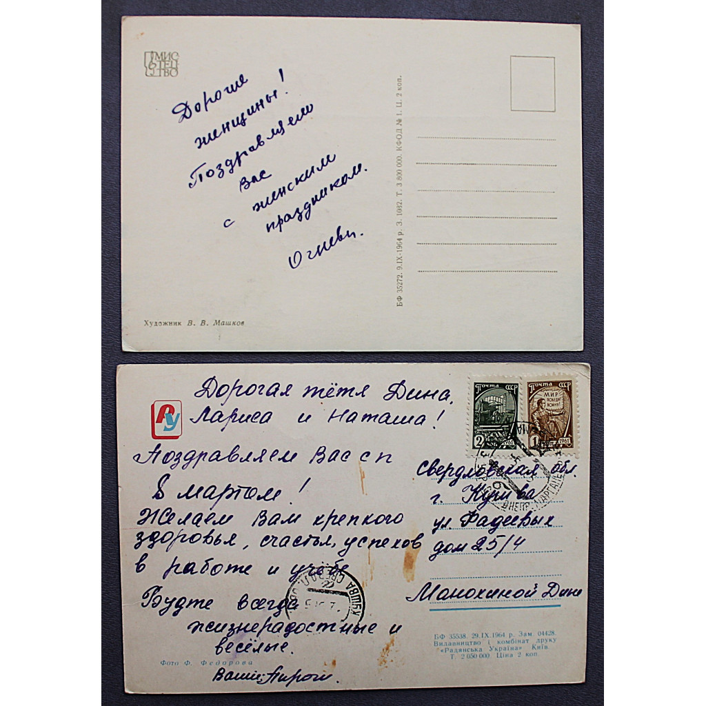 СССР пара открыток "8 березня!". 8 марта! (1964 год) Машков, Федорова