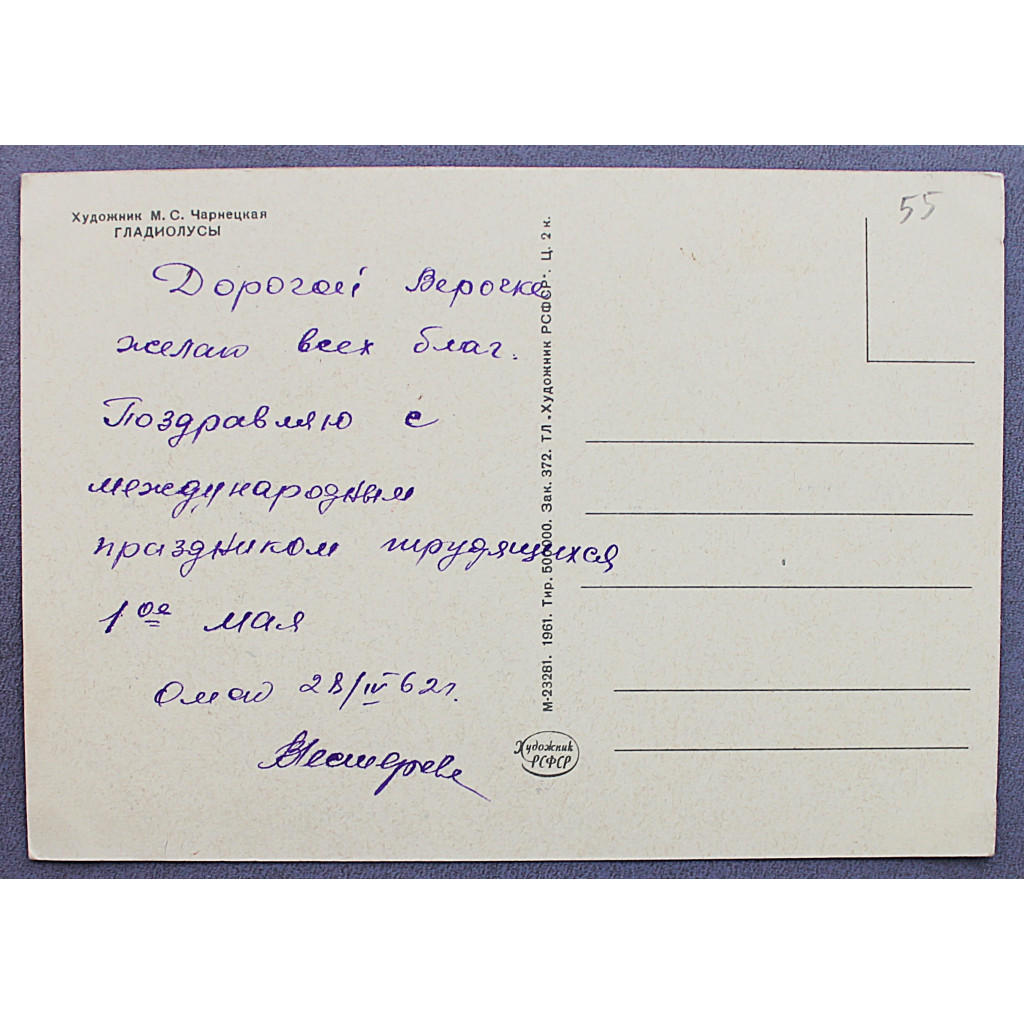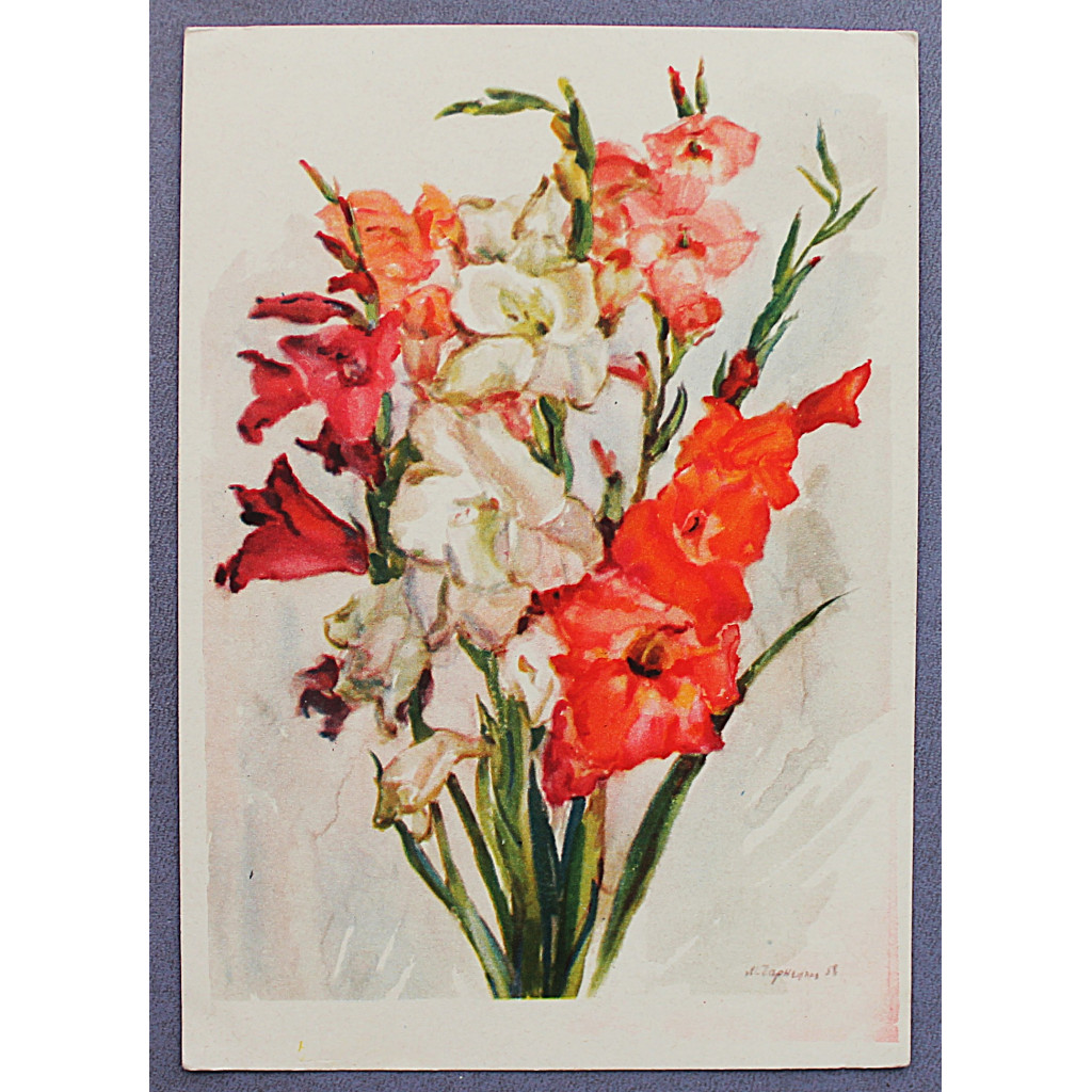 СССР почтовая открытка "ГЛАДИОЛУСЫ" (Художник РСФСР, 1961) Чарнецкая (подписана)