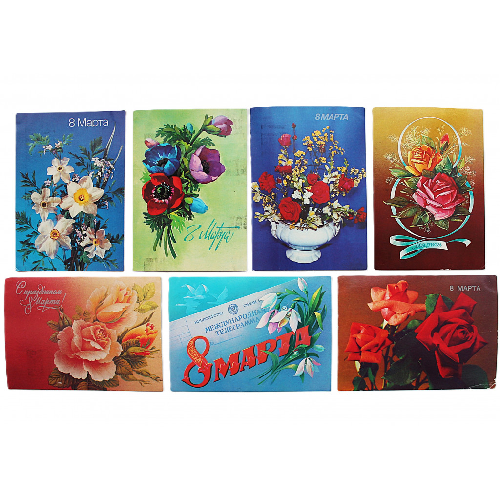 СССР комплект из 7 открыток "8 МАРТА" (1980-е гг.) подписаны