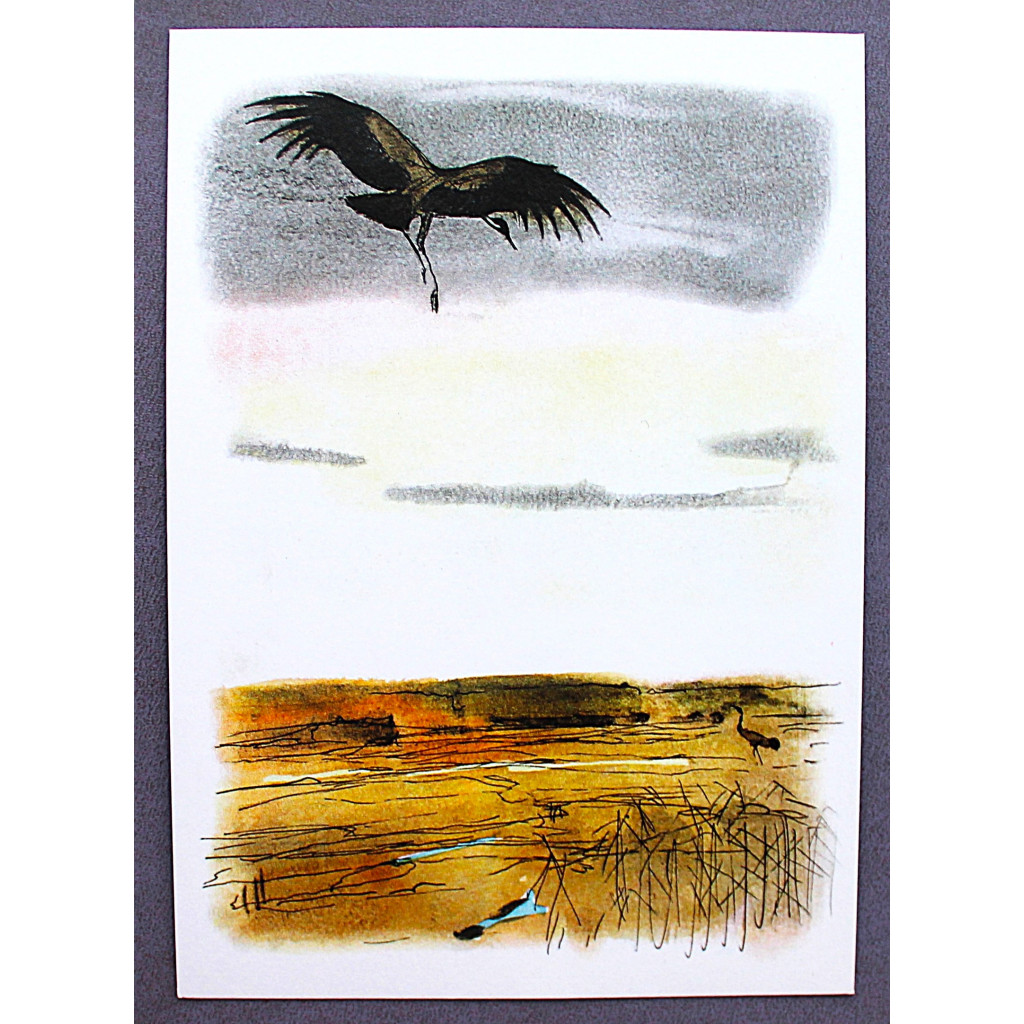 Почтовая открытка "Весна. Журавль над болотом" (Художник Г. Никольский) Новая