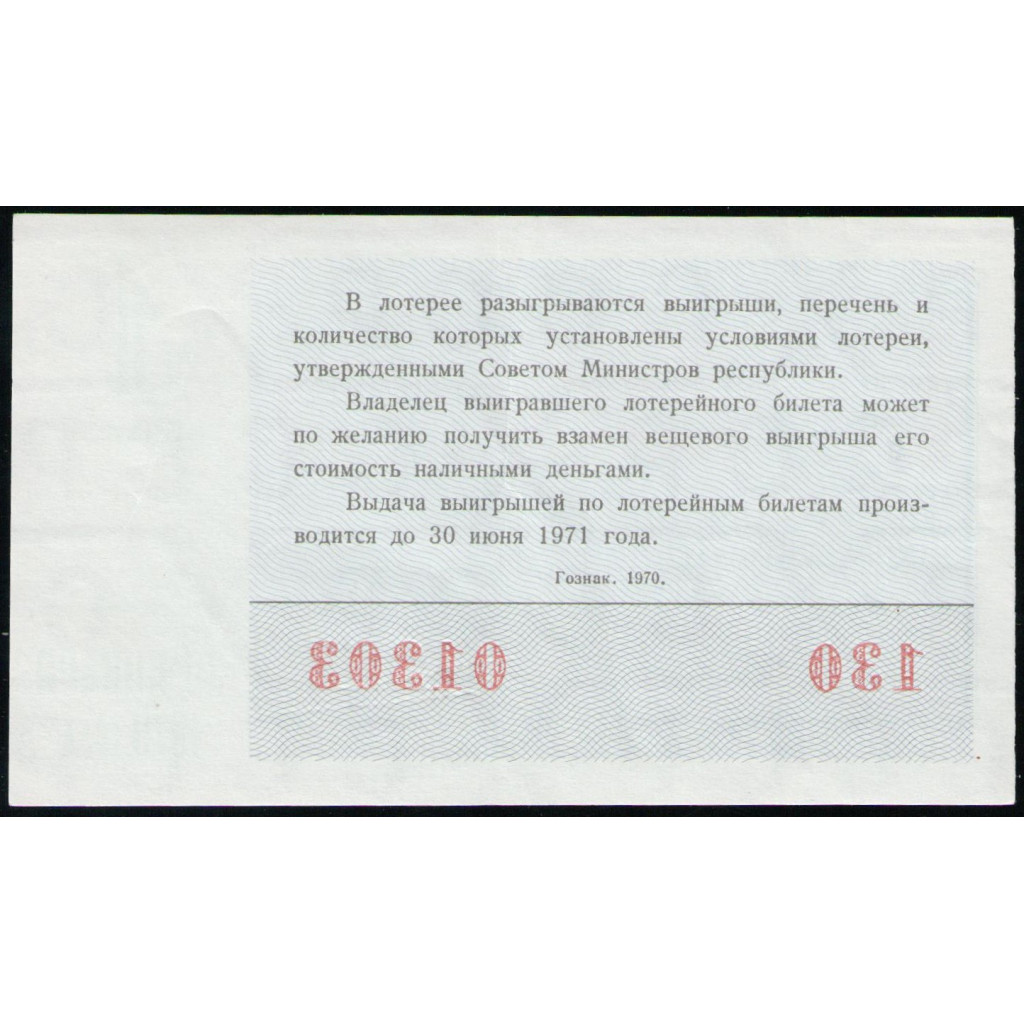 РСФСР 30 Копеек 1970 год , Лотерейный билет , 1 Выпуск