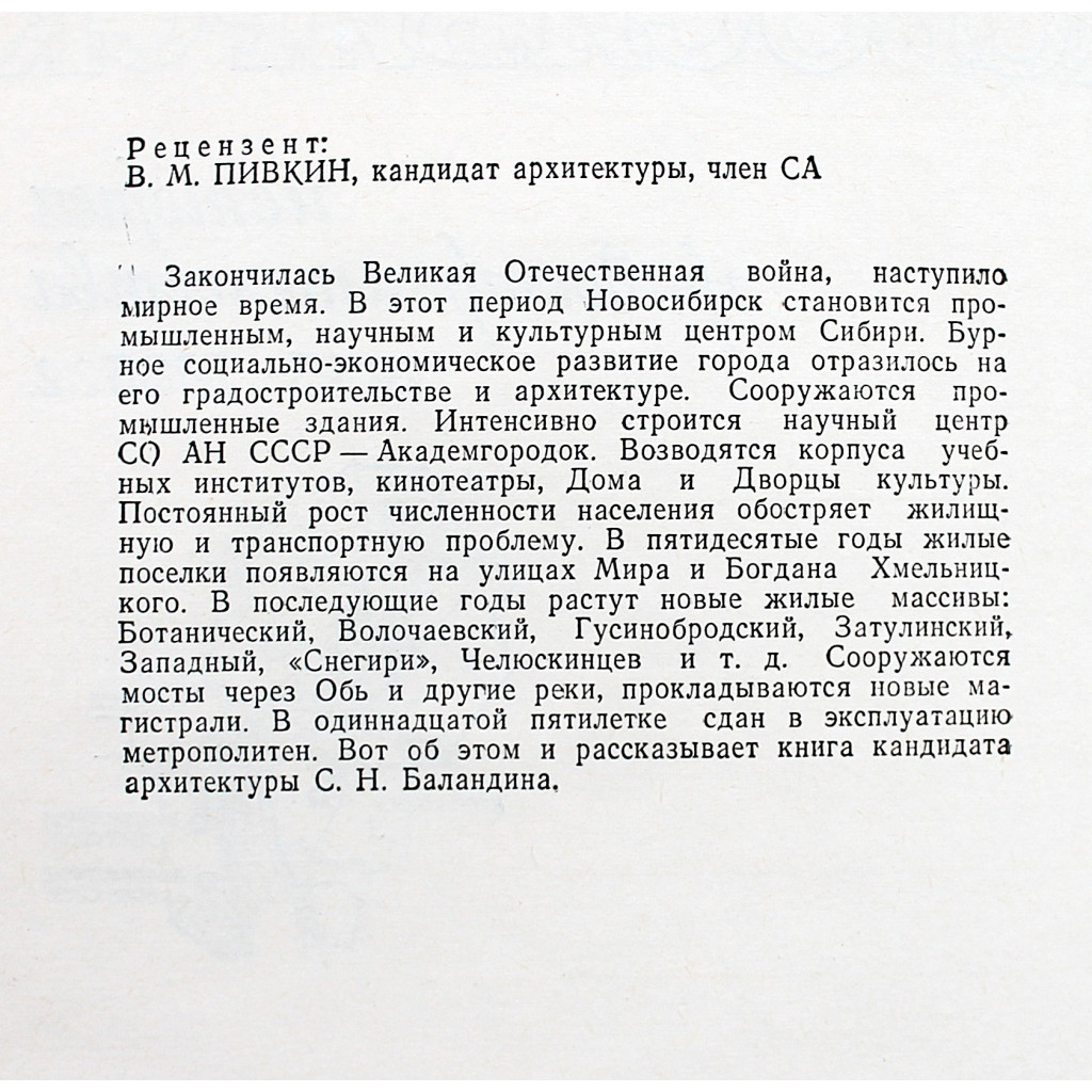 Автор книги - кандидат архитектуры С. Н. Баландин - на основе большого числа различных источников - публикаций, архивных документов и натурных исследований рассказывает о возникновении и развитии крупнейшего сибирского города - Новосибирска.