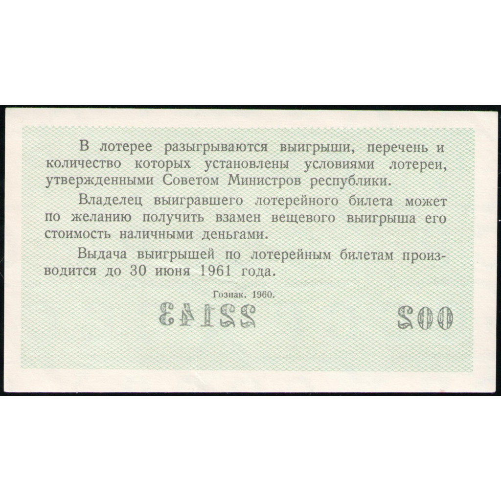РСФСР , 3 Рубля 1960 год , Лотерейный билет , 1 Выпуск