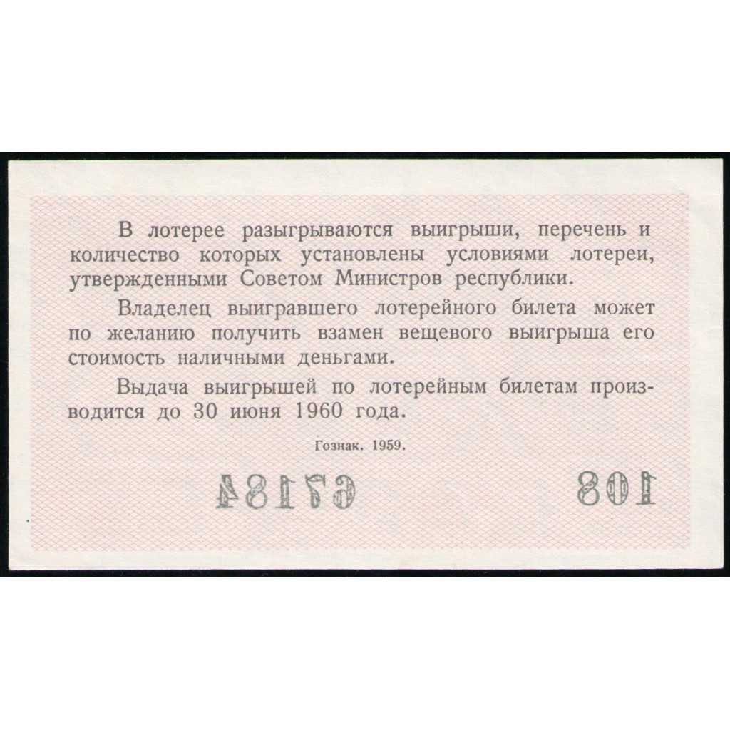 РСФСР , 3 Рубля 1959 год , Лотерейный билет , 3 Выпуск