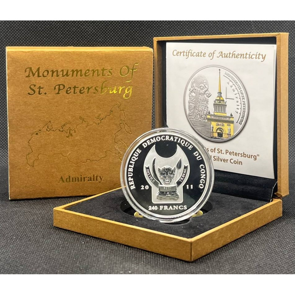 Конго 240 Франков 2011 год. Серебро 999. Монументы Санкт-Петербурга - Главное Адмиралтейство. Пруф / Proof