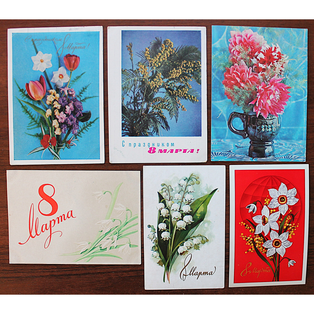 СССР подборка из 6 открыток "8 МАРТА". Цветы (подписаны)