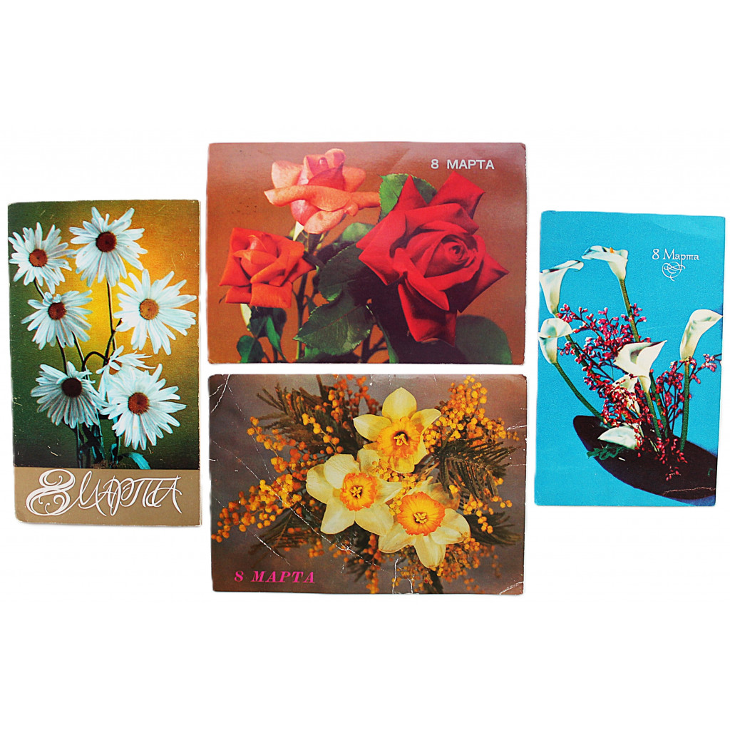 СССР подборка из 4 открыток "8 МАРТА". Цветы. Чистые