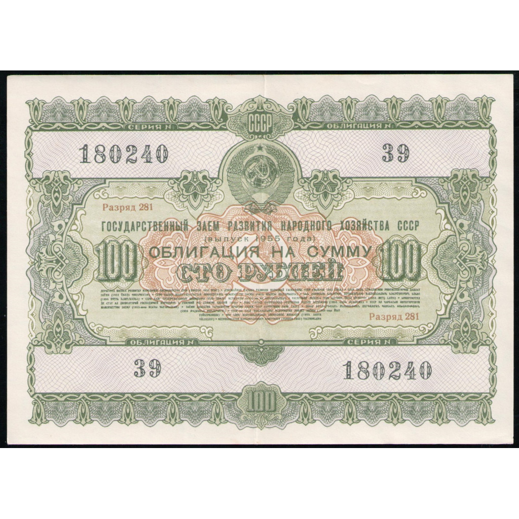 СССР 100 рублей 1955 год , Облигация
