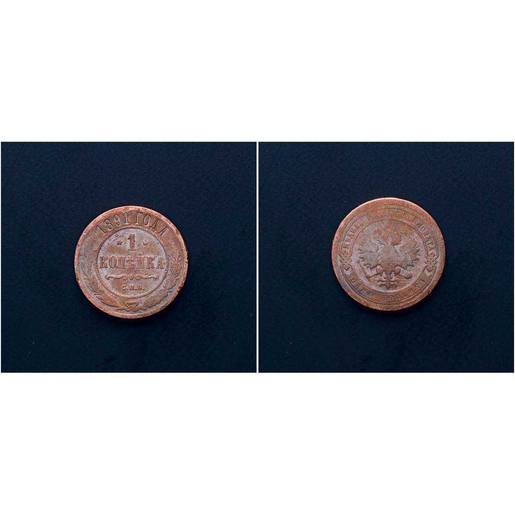 Россия 1 Копейка 1891 СПБ год. Александр III