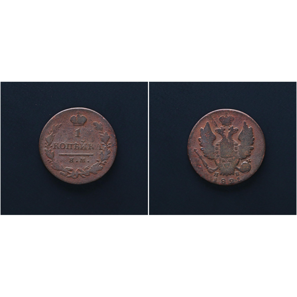 Россия 1 Копейка 1821 ИМ ЯВ год. Александр I