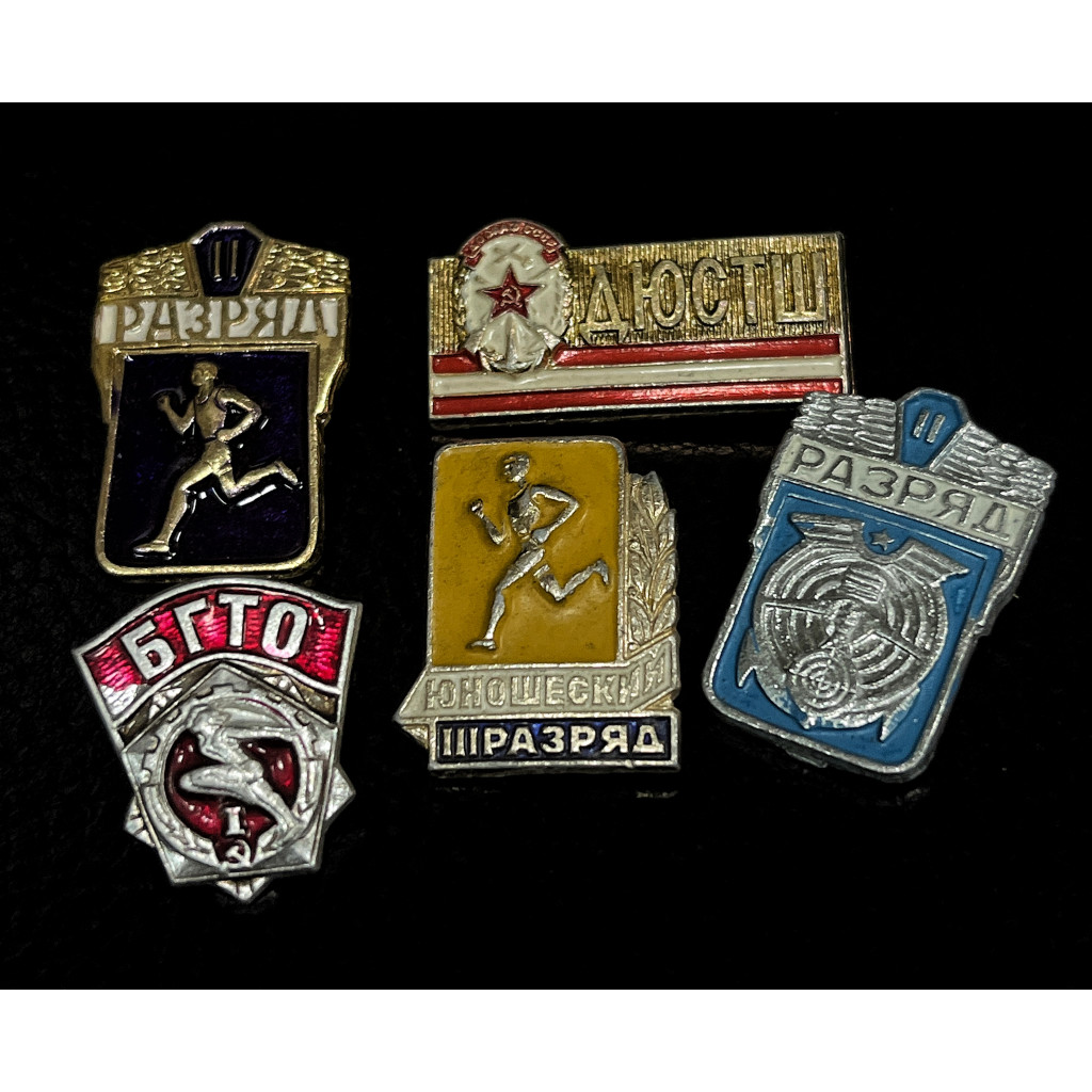 СССР набор из пяти Знаков / Значков. ГТО, Разряды, БГТО , ДЮСТШ. Спорт, Бег. (BOX1219)