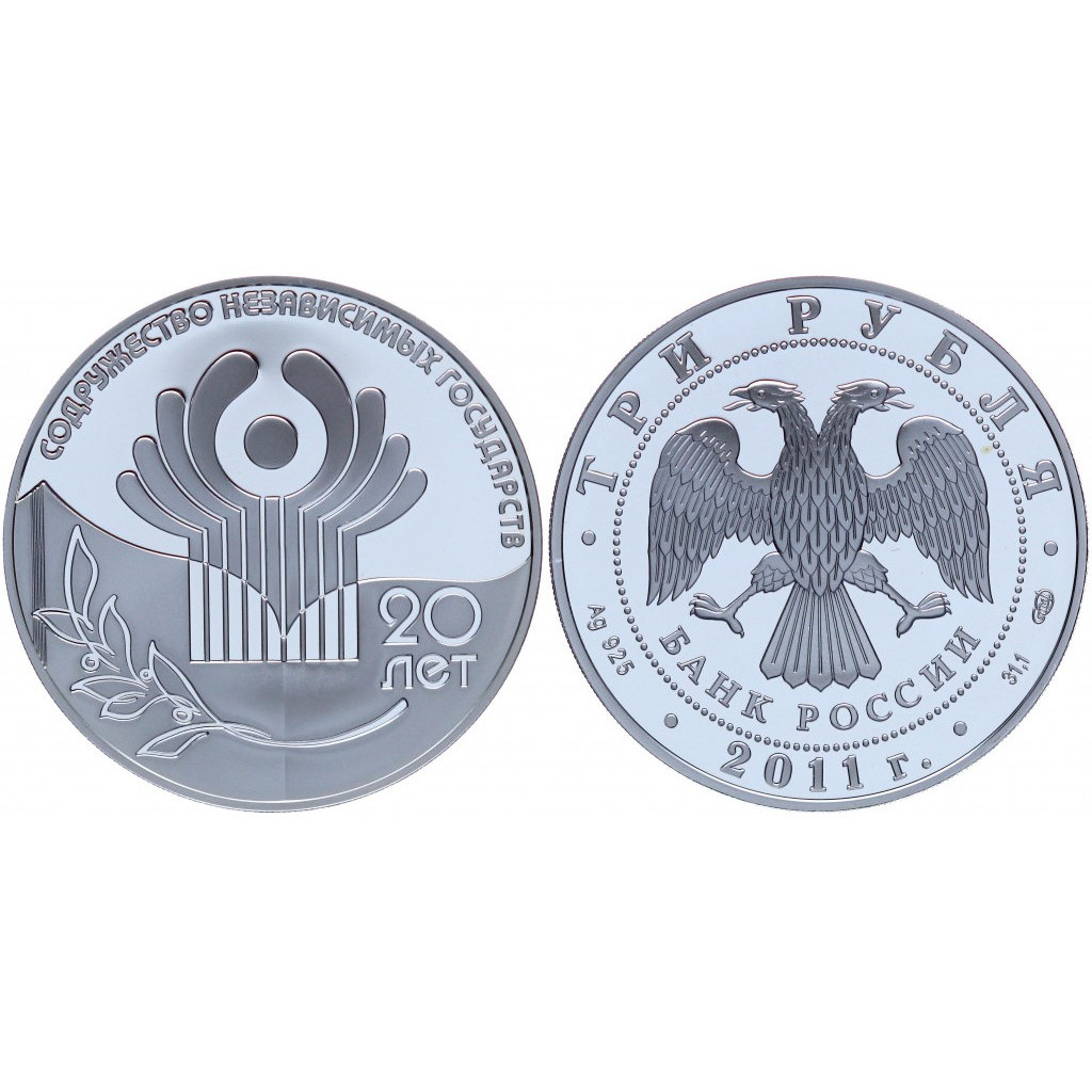 Россия 3 Рубля 2011 СПМД год. 20 лет СНГ Содружества Независимых Государств