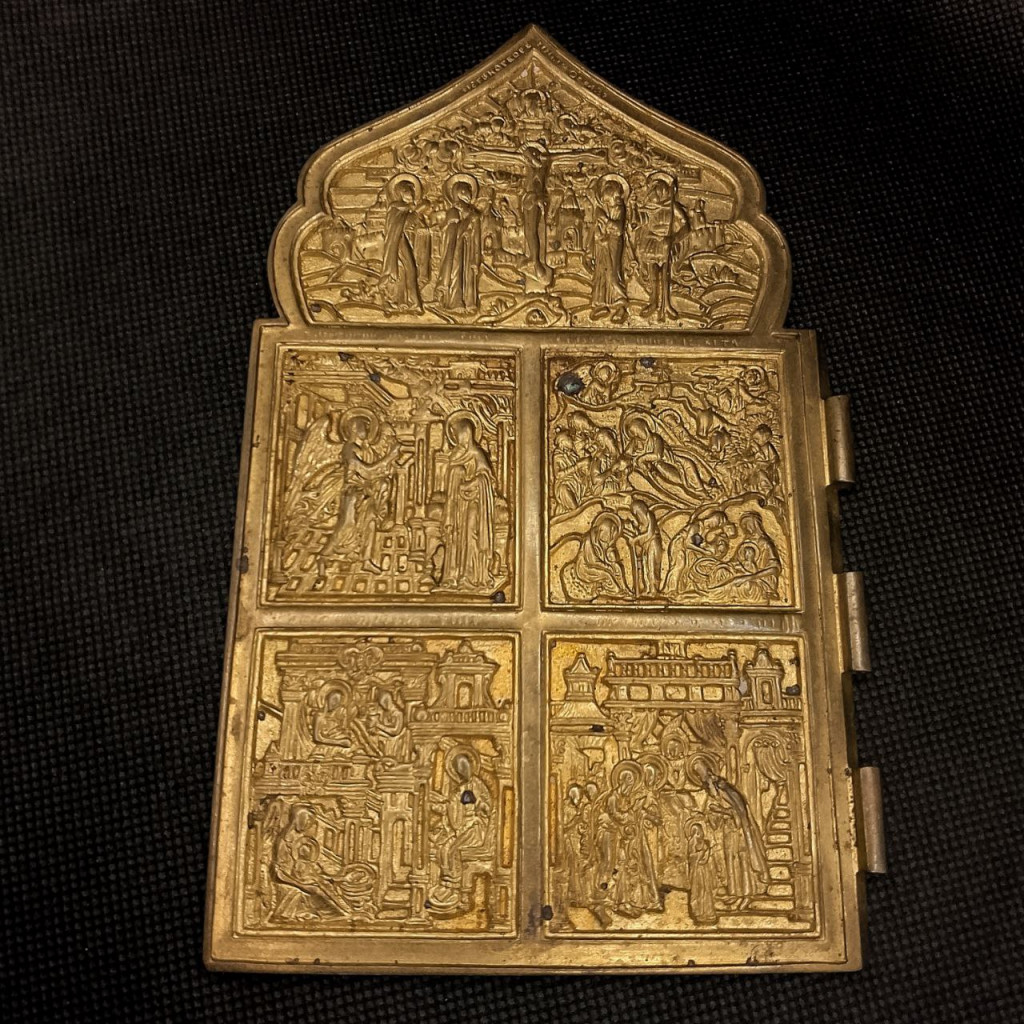 Включает пять композиций на библейские сюжеты: Благовещение, Рождество Христово, Рождество богоматери, Введение во храм, Распятие с предстоящими (в оглавии). Над распятым Иисусом Христом - Образ нерукотворный