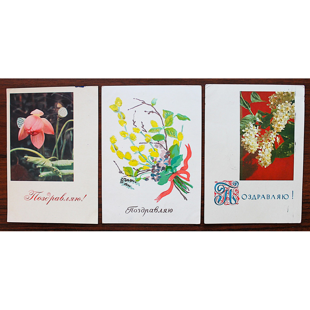 СССР комплект из 3 почтовых открыток «ПОЗДРАВЛЯЮ!». Весенние цветы (1958-1967 гг.) Подписаны