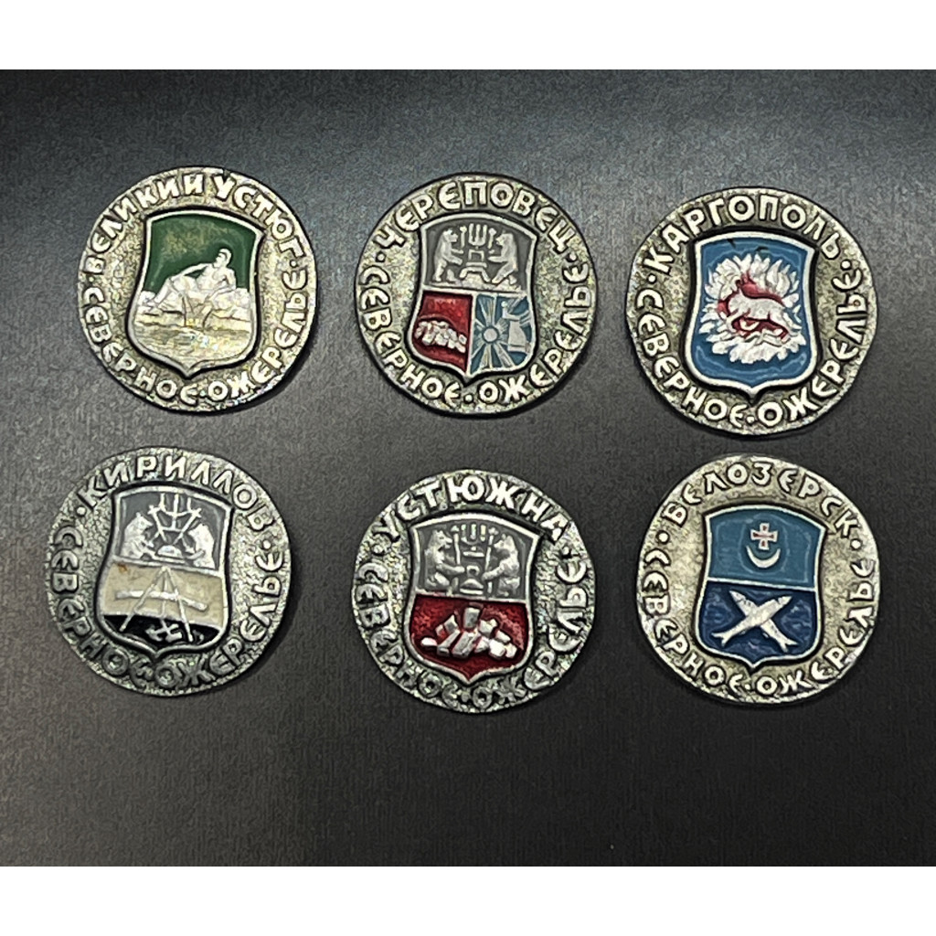 Набор из 6 Значков Города / Гербы. Серия Северное Ожерелье. (BOX)