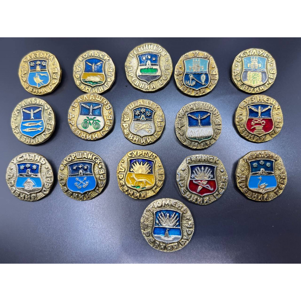 Набор из 16 Значков Города / Гербы №1. Серия Древний Герб
