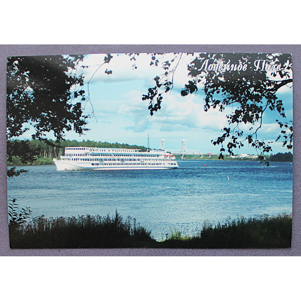 Открытка. Лодейное Поле. Река Свирь. Теплоход на фоне Лодейнопольского разводного моста. Новая