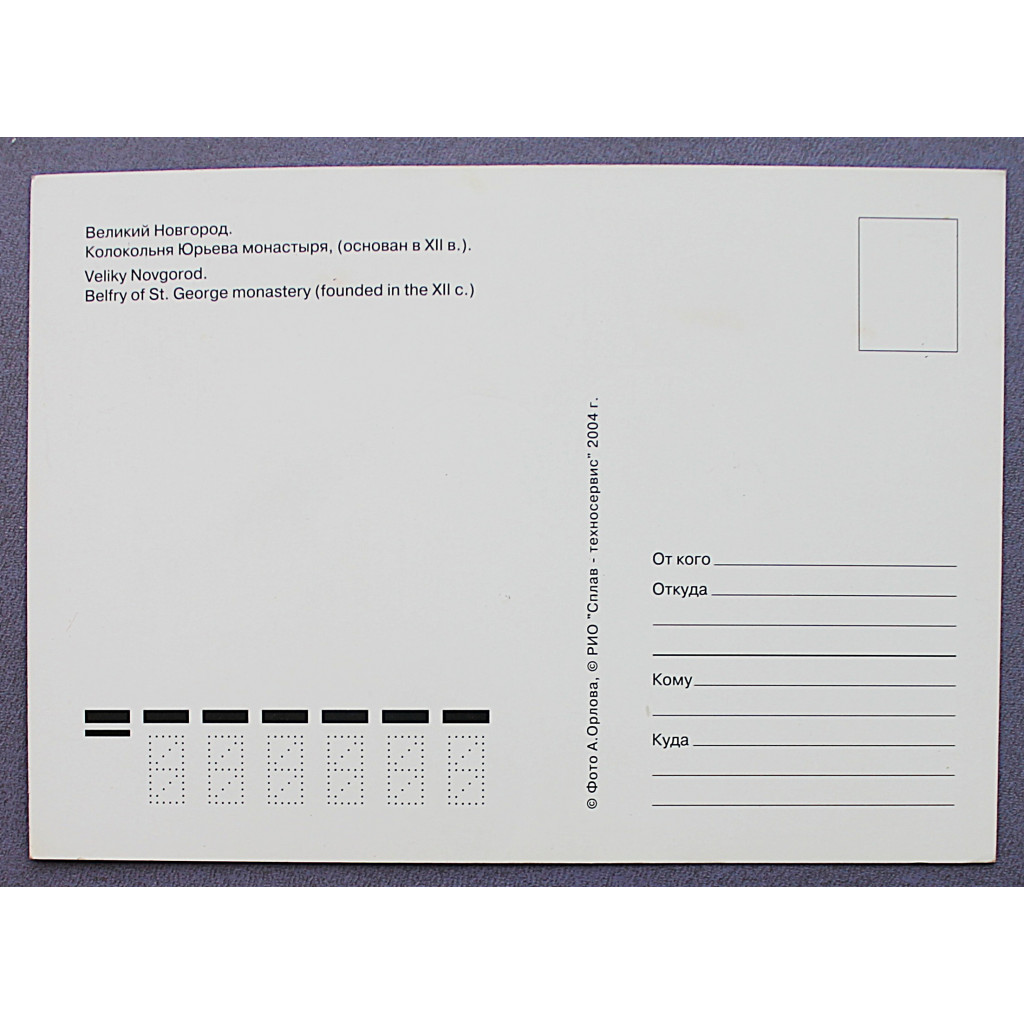 Открытка. Великий Новгород. Колокольня Юрьева монастыря. Основан в XX веке. (2004 год) Новая
