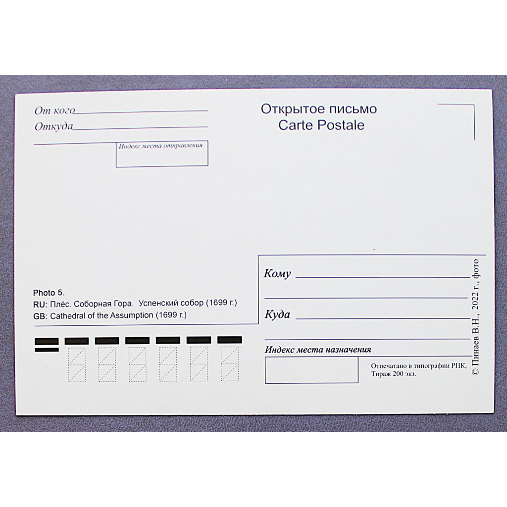 Открытка. Плёс. Соборная Гора. Успенский собор (Пинаев, 2022) Новая. Посткроссинг
