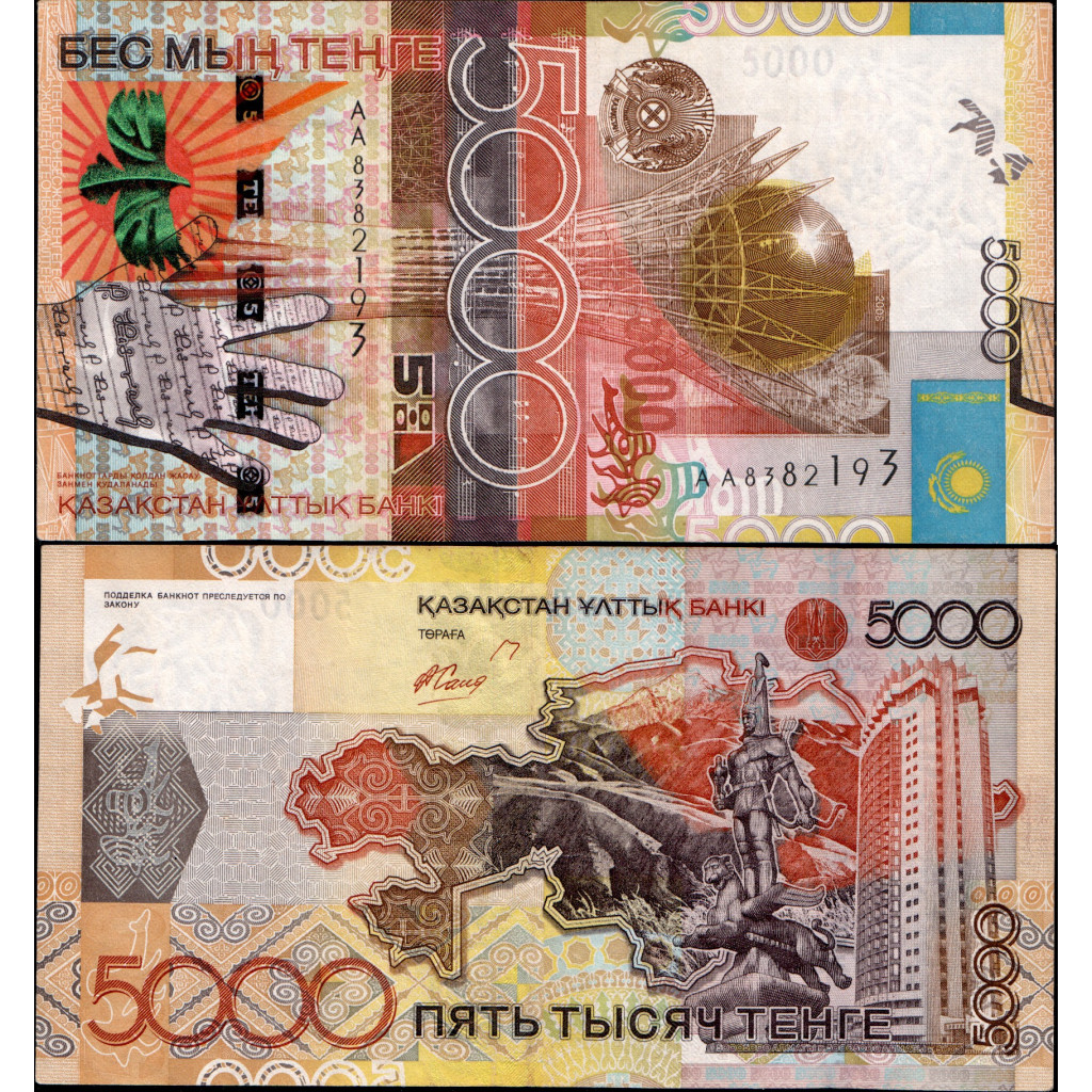 Казахстан 5000 Тенге 2008 год. Памятная. Ошибка - К с хвостиком АА 8382193