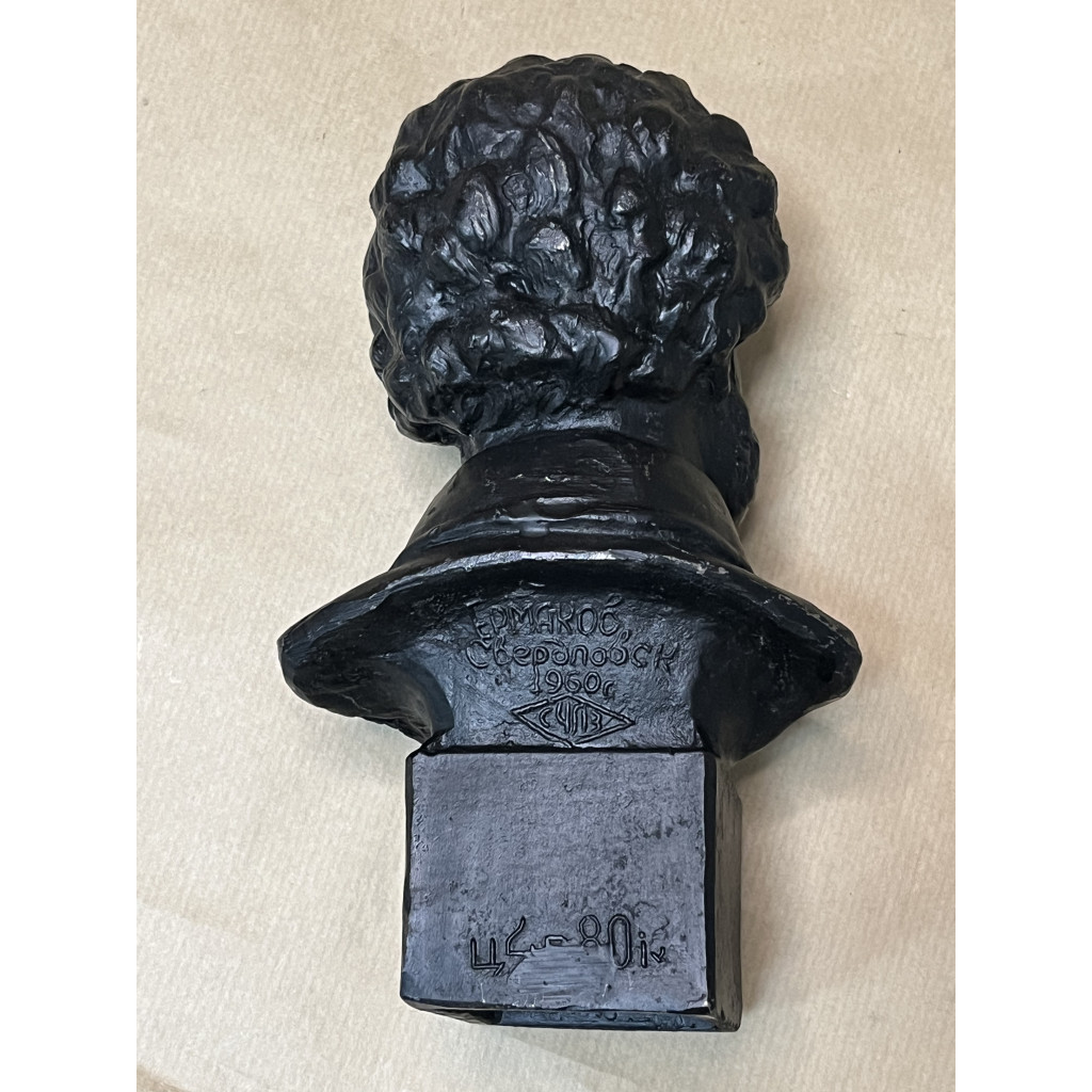 Бюст «А.С. Пушкин». Чугунное литье. Тяжелый. Клеймо «Ермаков, Свердловск, 1960 г. СЧЛЗ». Высота 19 см