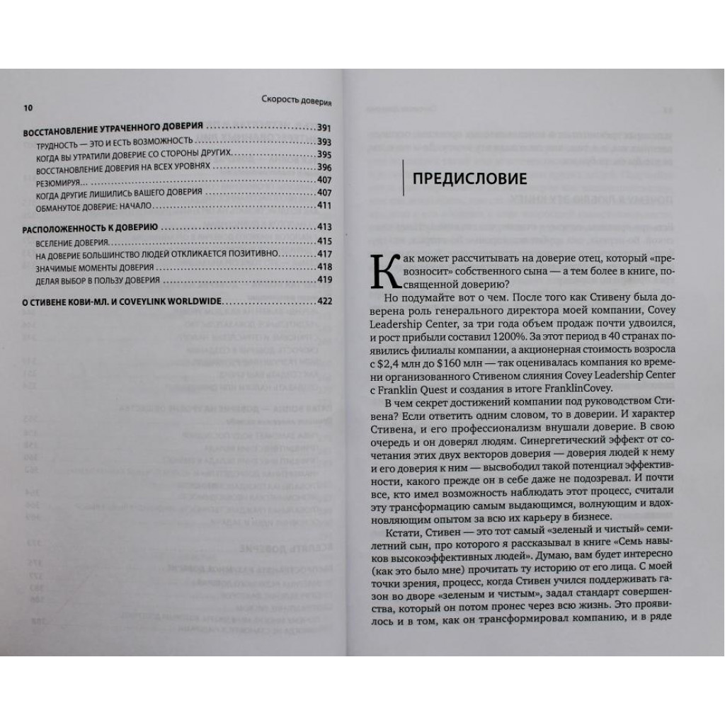 Доверие - это основа любых отношений, как в личной жизни, так и в бизнесе. Если вы кому-то не доверяете, исполнение любой просьбы или поручения придется постоянно контролировать и проверять. Люди, которым не доверяют, теряют мотивацию и работают менее качественно. Оказывая же доверие людям, мы не только упрощаем себе жизнь, но и изменяем отношения к лучшему. "Нет экономики более прибыльной, чем экономика доверия", - заявляет Стивен Кови - младший и подтверждает это не только на собственном опыте, но и примерами достижений многих выдающихся людей в мире бизнеса и политики.