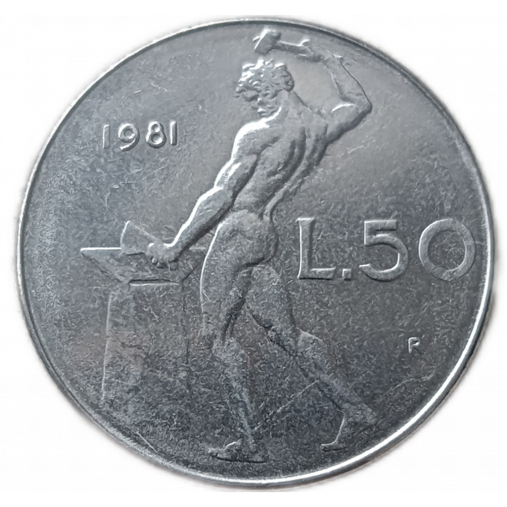 Италия 50 Лир 1981 год , Бог огня Вулкан
