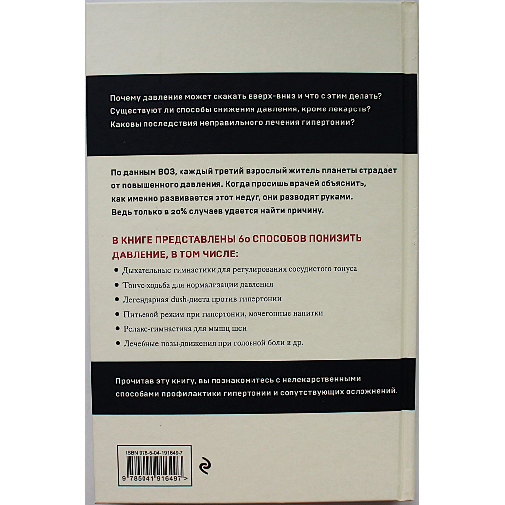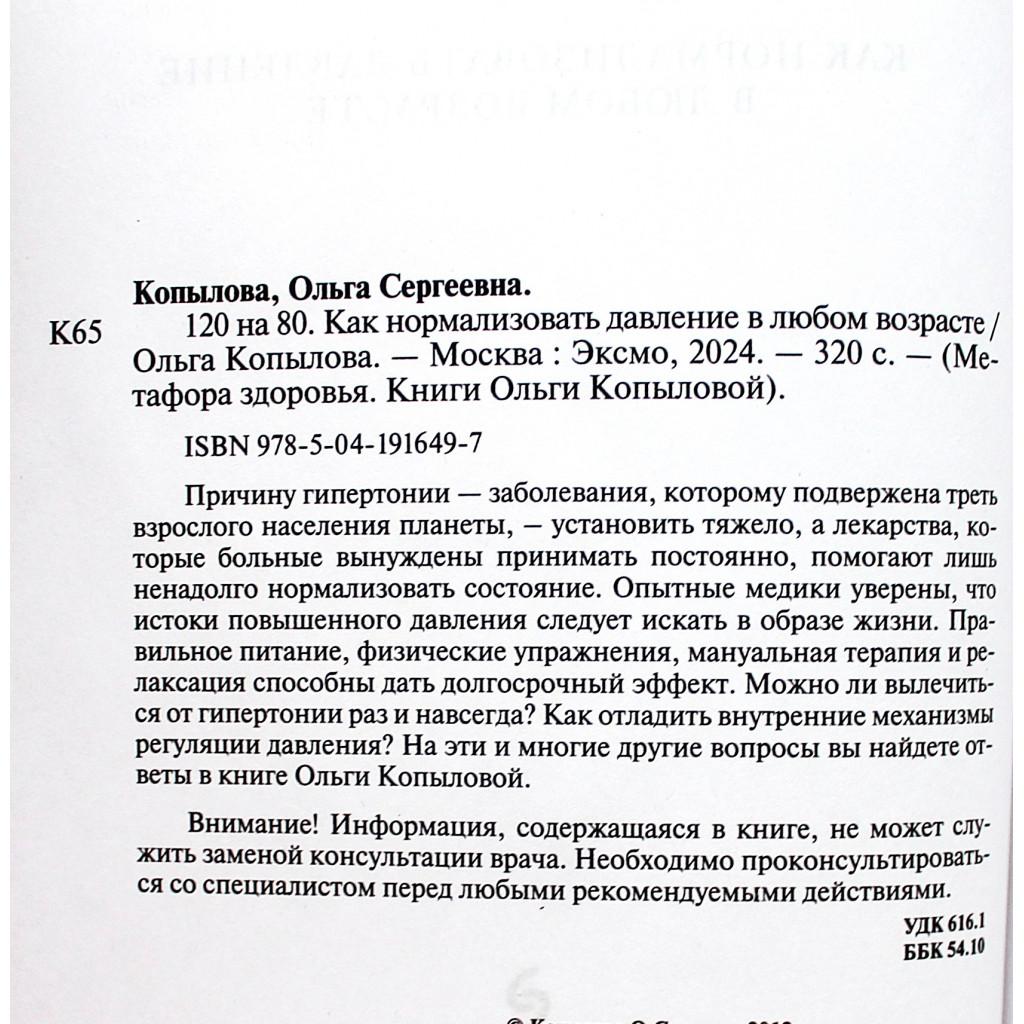 Вот что сказал о ней доктор медицинских наук, профессор, заслуженный врач Российской Федерации Анатолий Болеславович Ситель: «Можно ли вылечить гипертонию лекарствами? Увы, нет. С помощью лекарств можно снизить артериальное давление, но если перестать пить таблетки, оно снова повысится. А вот здоровый образ жизни способен творить чудеса! В книге Ольги Копыловой рассказывается о том, как нормализовать артериальное давление с помощью правильного питания, методов релаксации, специально подобранных физических упражнений и мануальной терапии. Книга написана легким и доступным языком и затрагивает все наиболее важные моменты в профилактике и лечении гипертонической болезни. Воспользовавшись приведенными в книге рекомендациями по естественному оздоровлению, можно одержать победу над гипертонией, при этом не отказываясь от медикаментозного лечения и наблюдения врача».